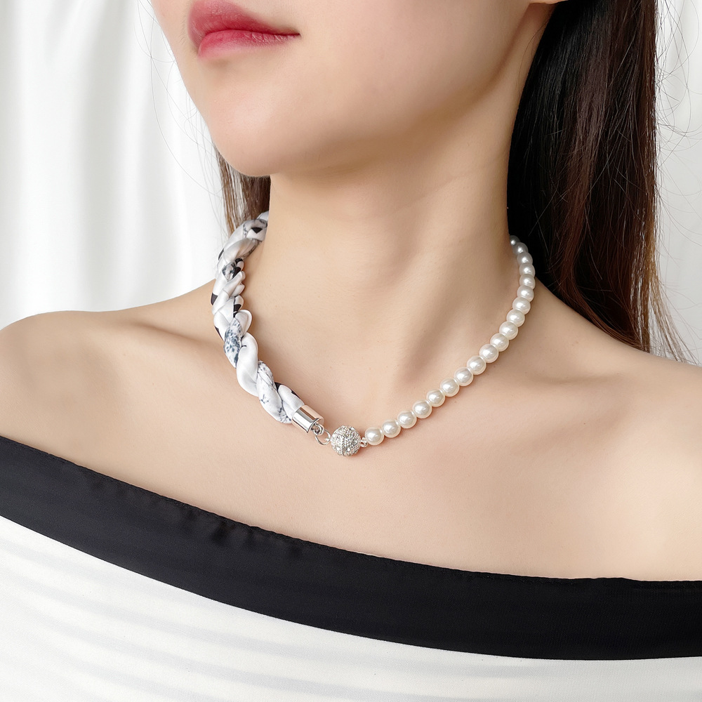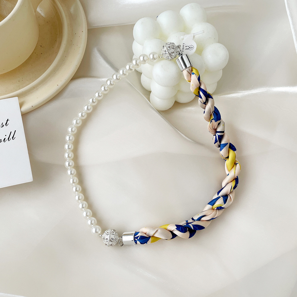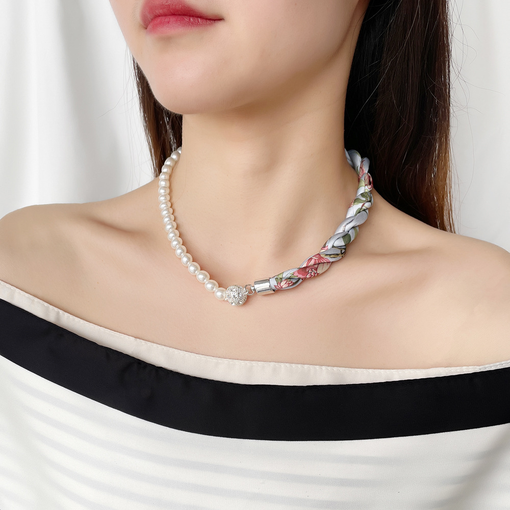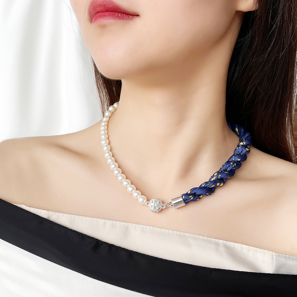 여름 새로운 진주 자석 버클 목걸이 스카프 여성용 틈새 하이 엔드 팔찌 우아한 쇄골 체인 스카프스토어 가기