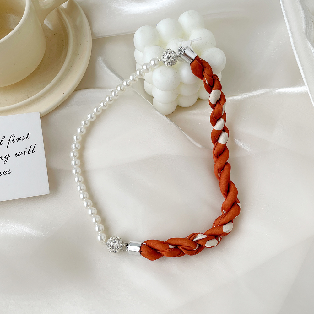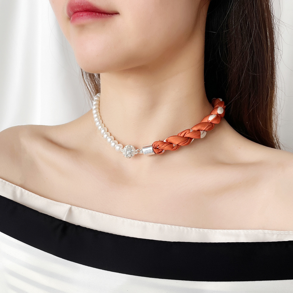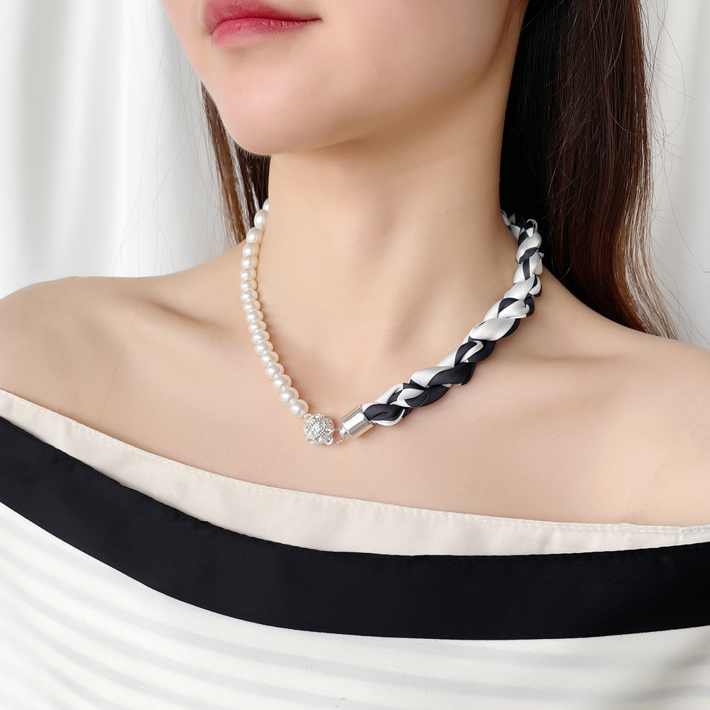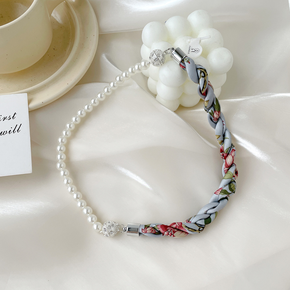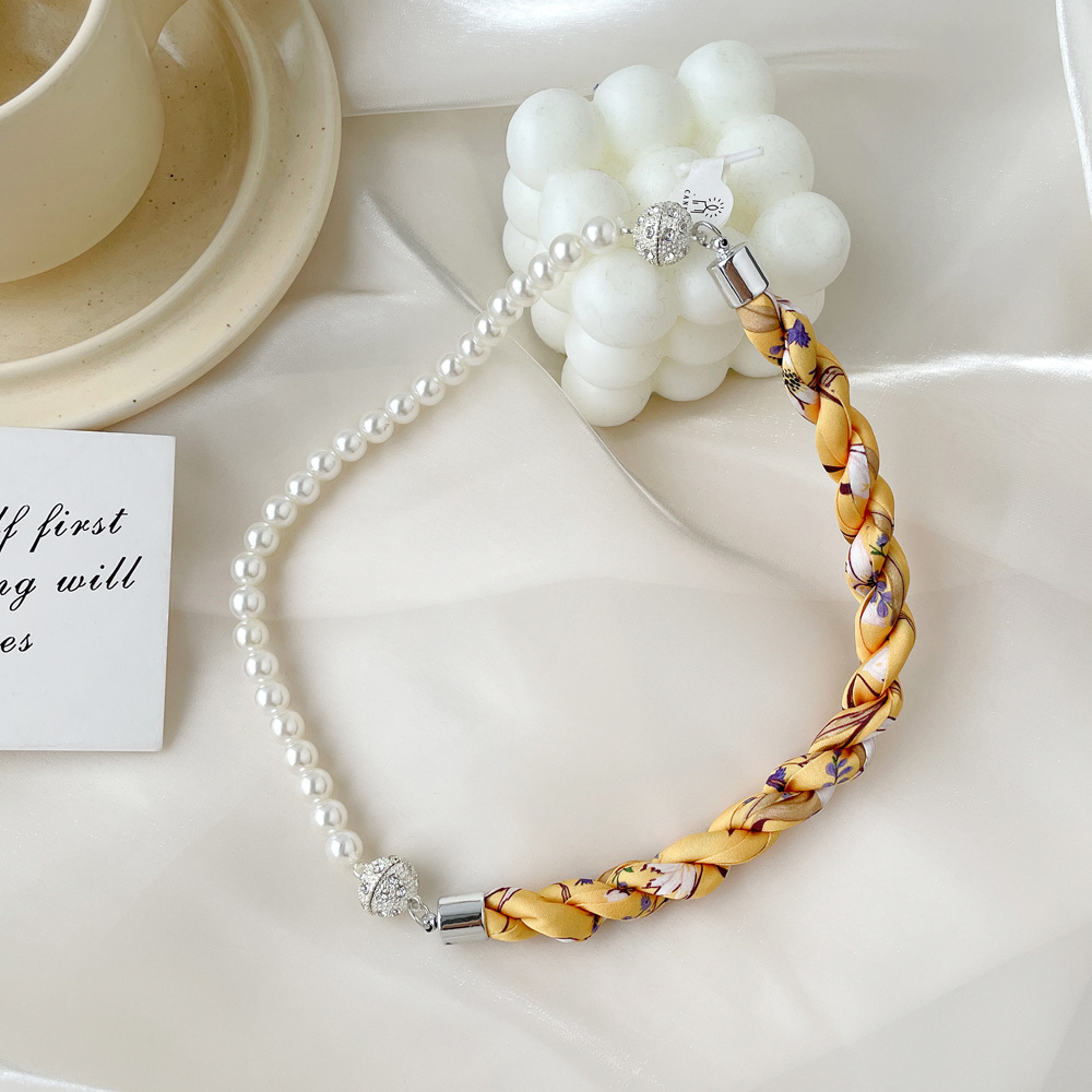 여름 새로운 진주 자석 버클 목걸이 스카프 여성용 틈새 하이 엔드 팔찌 우아한 쇄골 체인 스카프스토어 가기