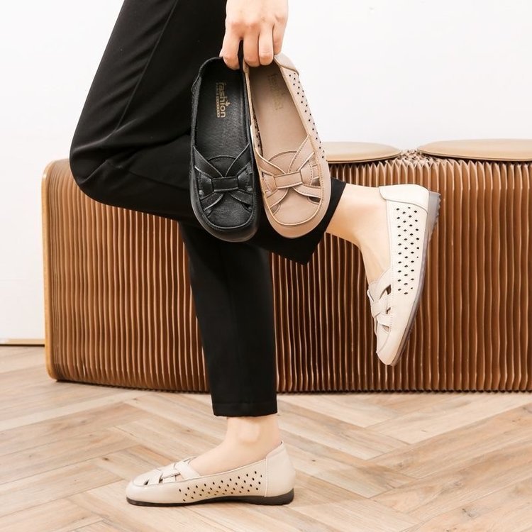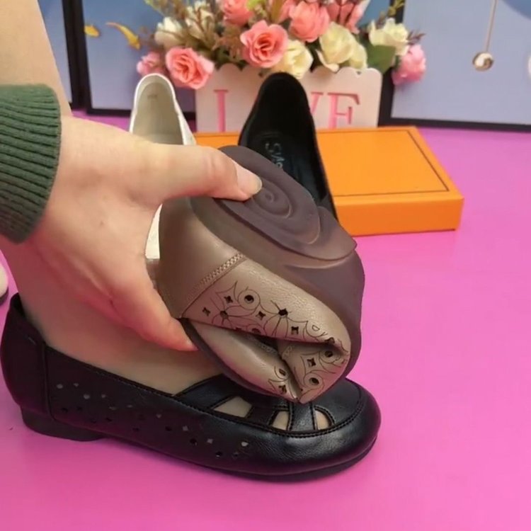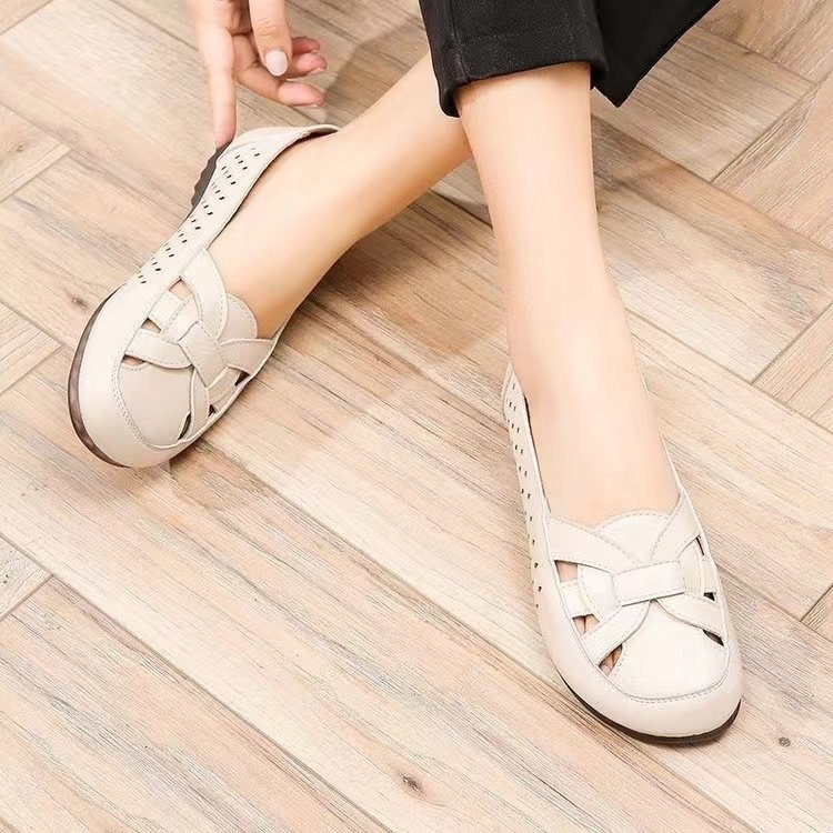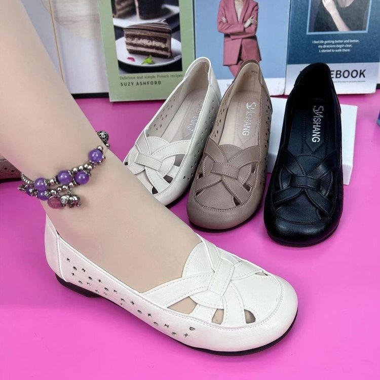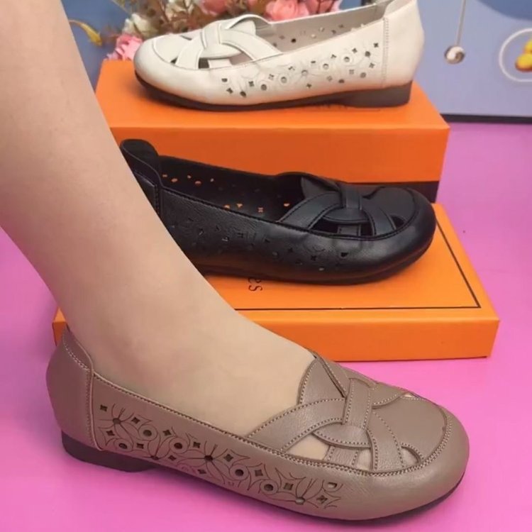 엄마 샌들 진짜 부드러운 가죽 부드러운 바닥 여름 2024 중년 및 노인 편안한 할로우 신발 플러스 사이즈 새로운 구멍 신발스토어 가기