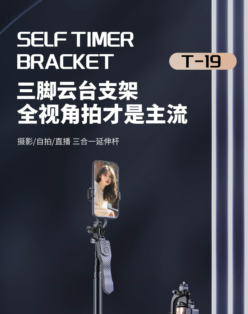 2024 새로운 휴대 전화 셀카 스틱 T19 휴대용 안정적인 바닥 트레몰로 라이브 스탠드 삼각대 셀카 스틱