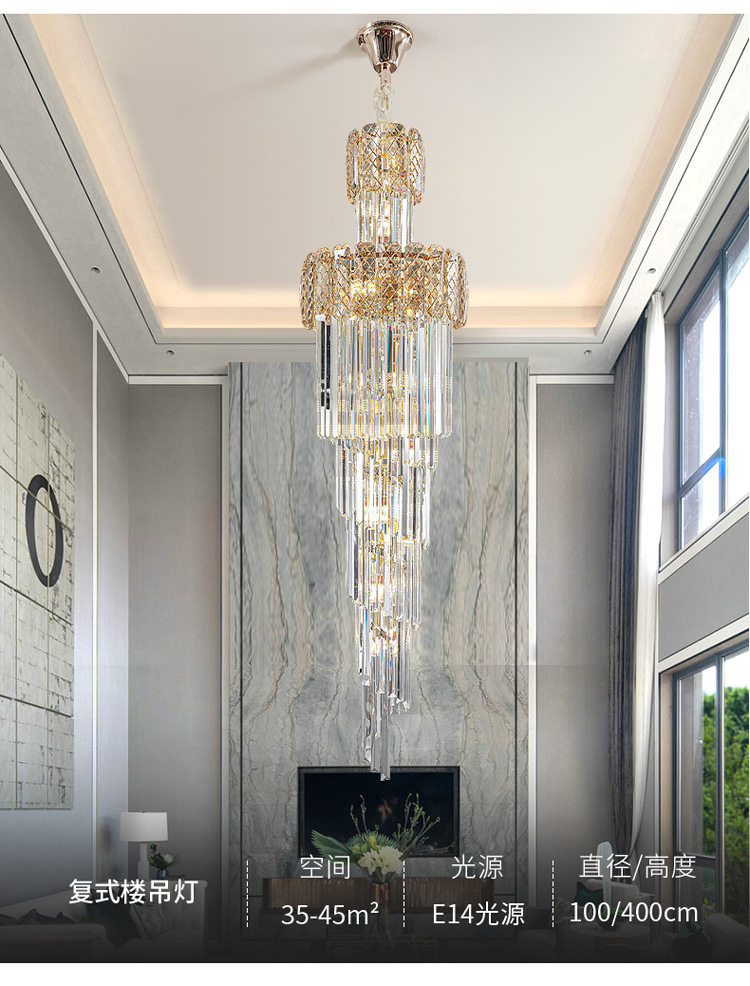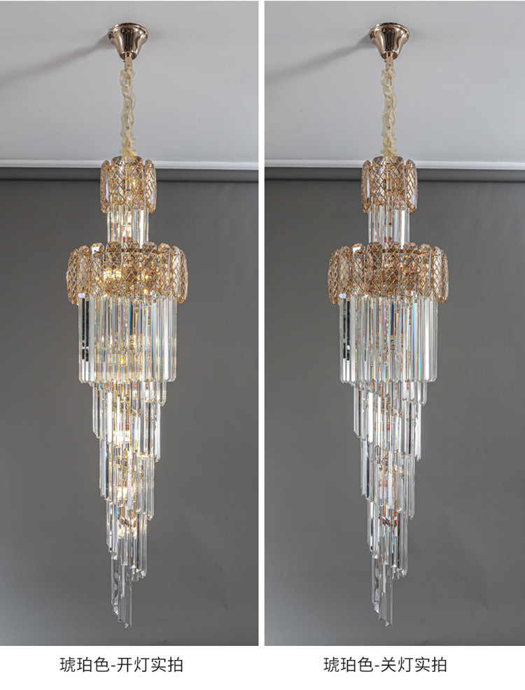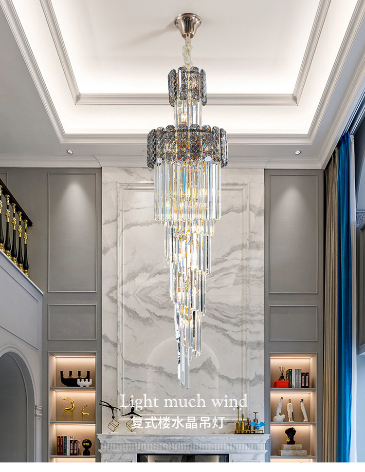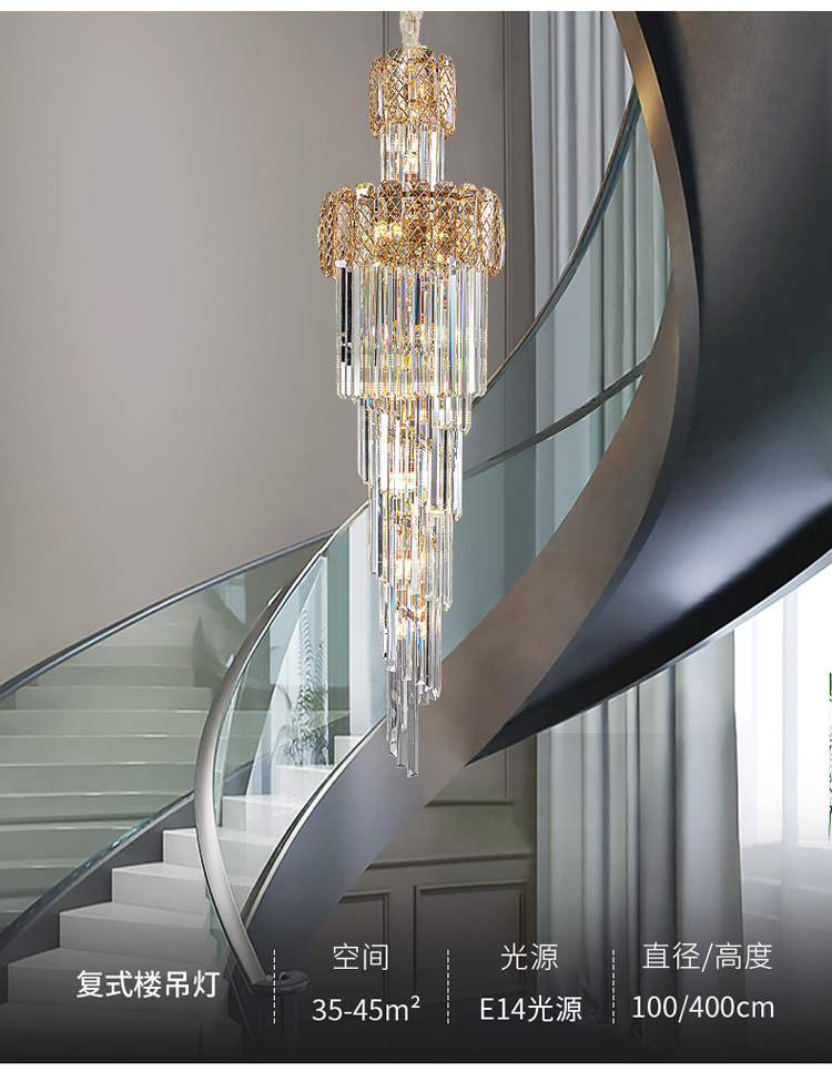 회전 계단 긴 샹들리에 빌라 거실 크리스탈 램프 빈 건물 중간 건물 현대 간단한 더블 빌딩 홀 램프스토어 가기
