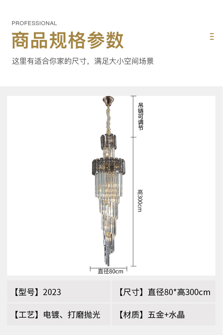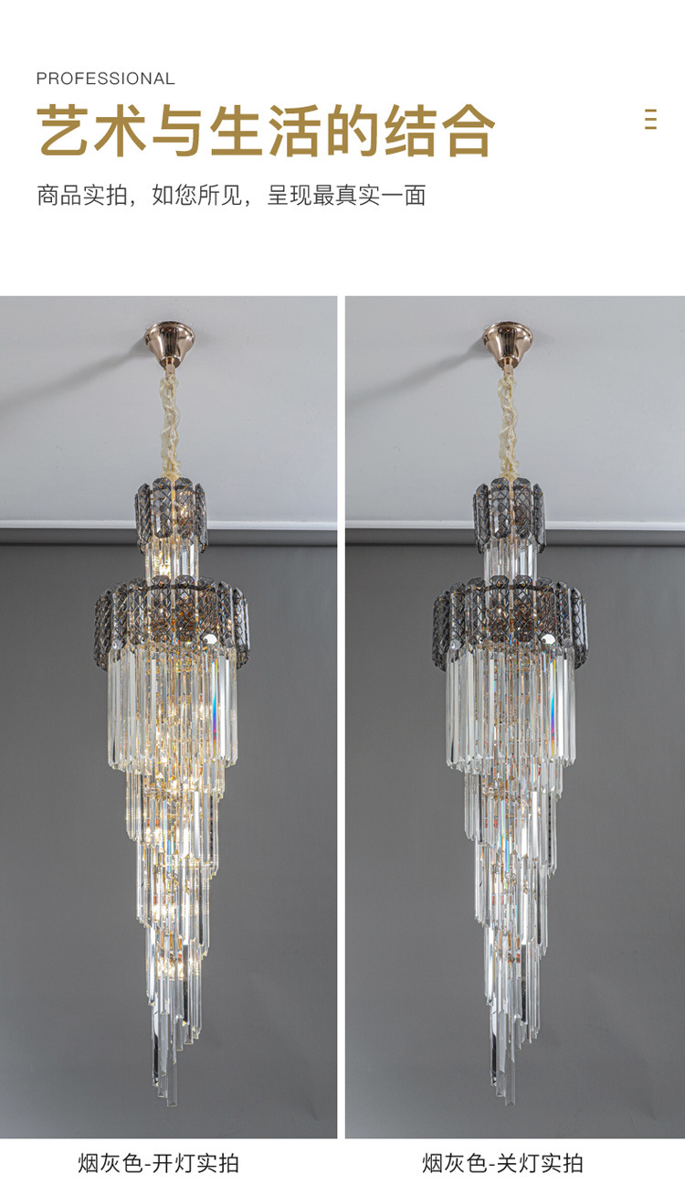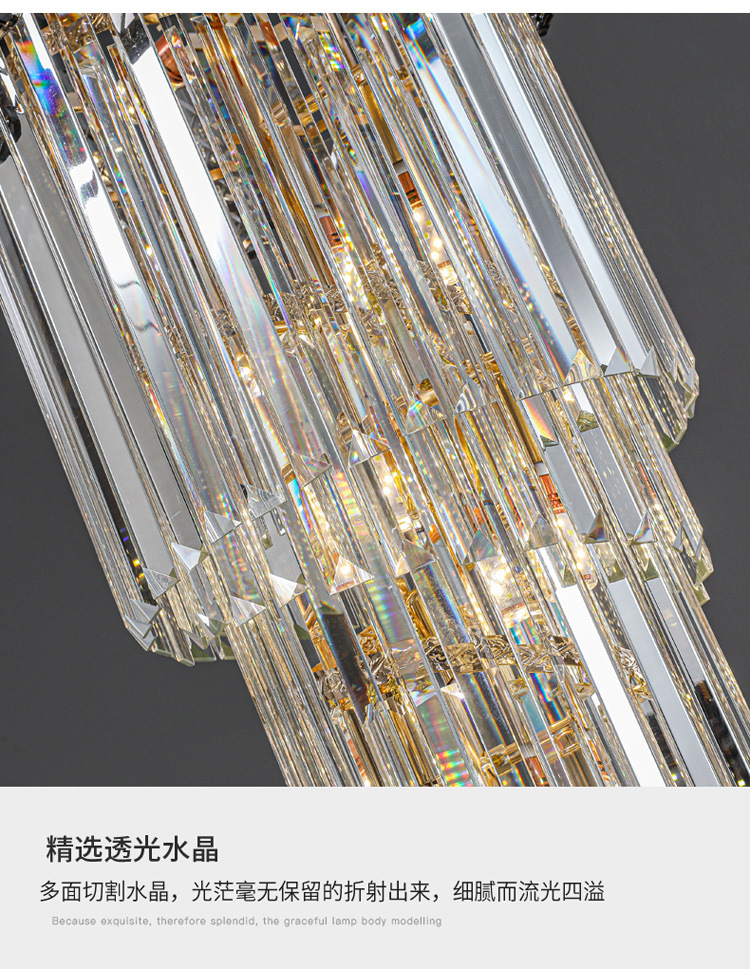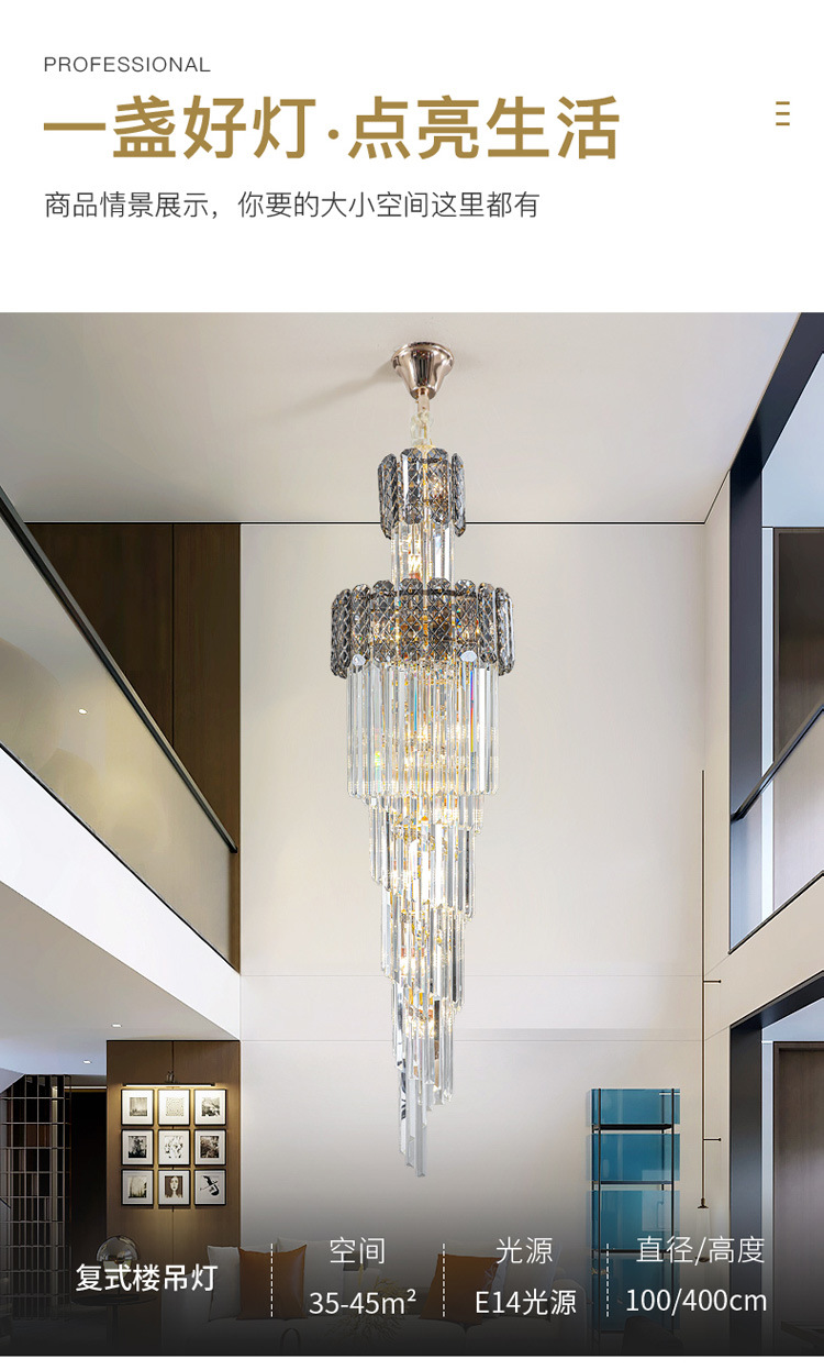회전 계단 긴 샹들리에 빌라 거실 크리스탈 램프 빈 건물 중간 건물 현대 간단한 더블 빌딩 홀 램프스토어 가기