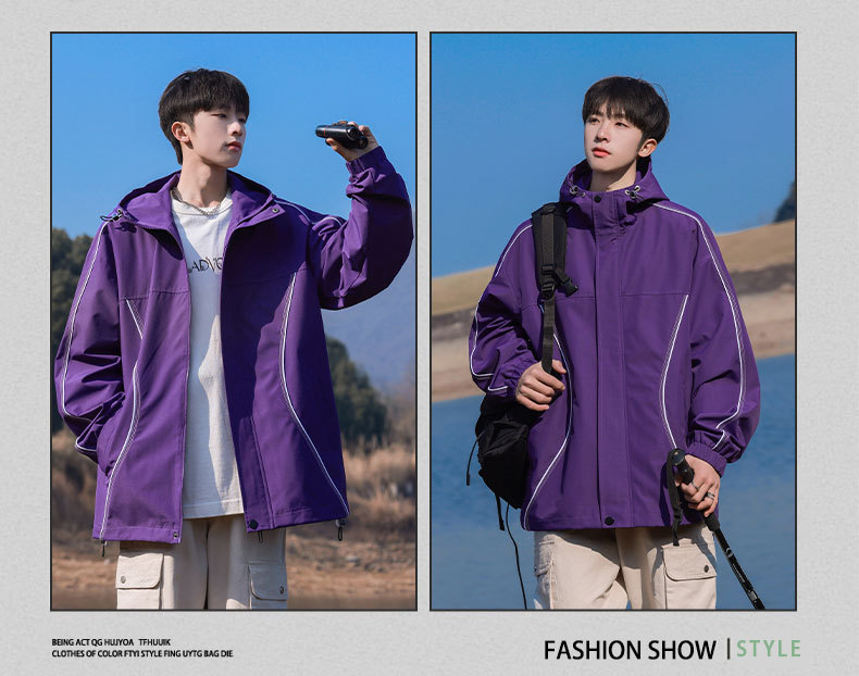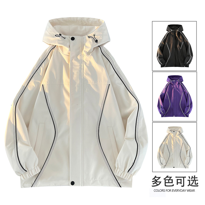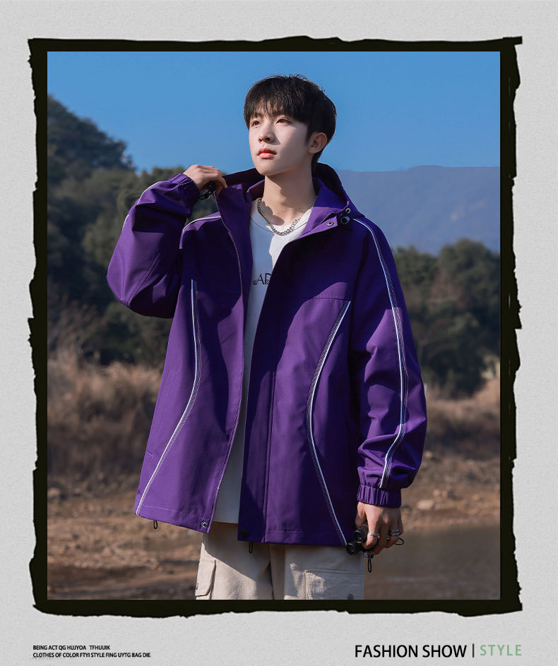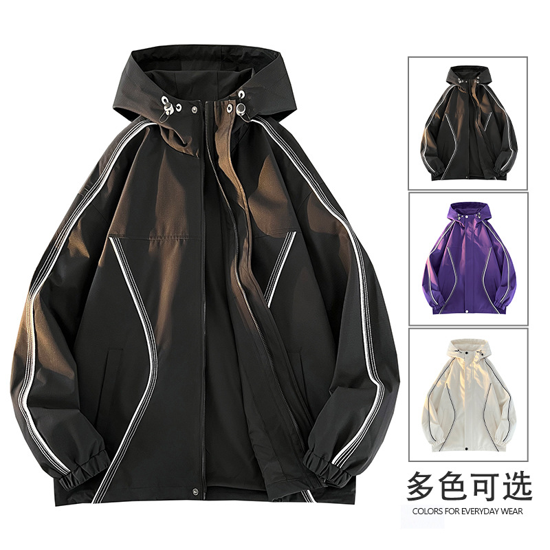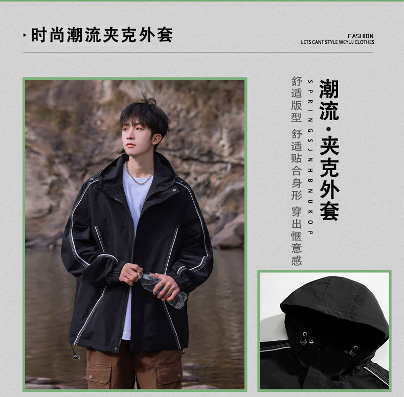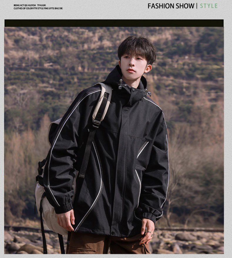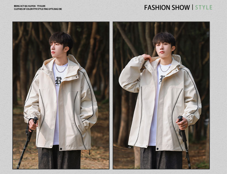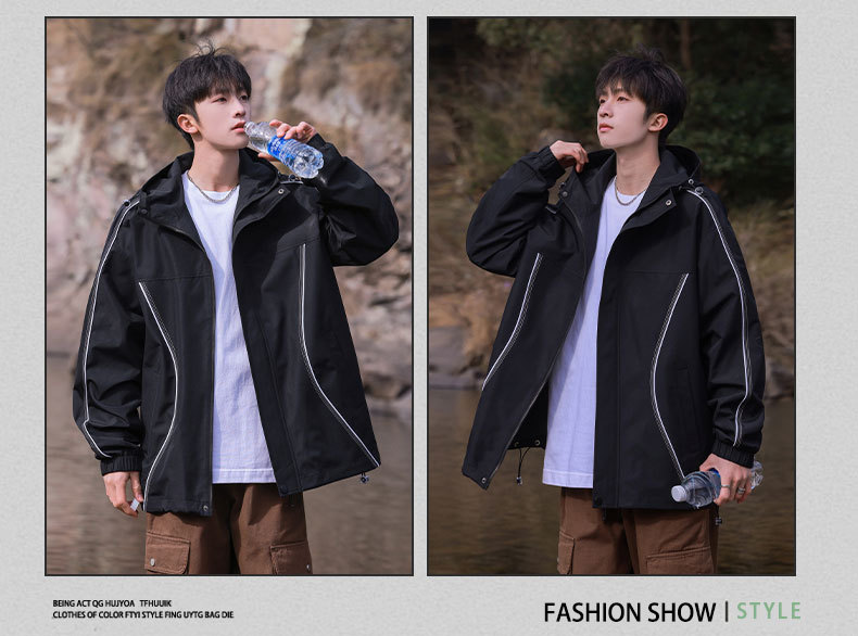 IZEXX 트렌디 브랜드 더블 레이어 후드 자켓 하이 스트리트 스탠드 칼라 자켓 방풍 자켓 남성용 캐주얼 자켓