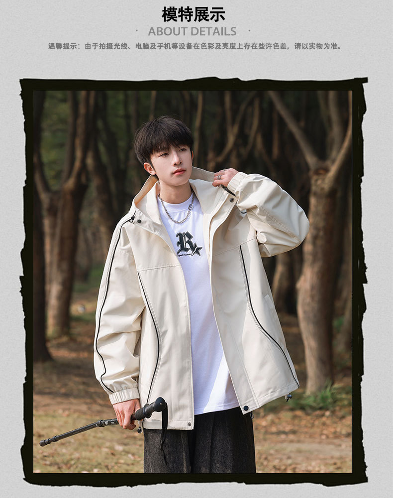 IZEXX 트렌디 브랜드 더블 레이어 후드 자켓 하이 스트리트 스탠드 칼라 자켓 방풍 자켓 남성용 캐주얼 자켓스토어 가기