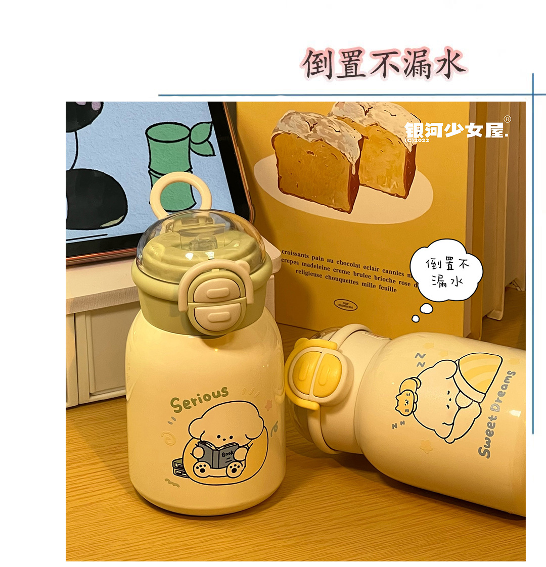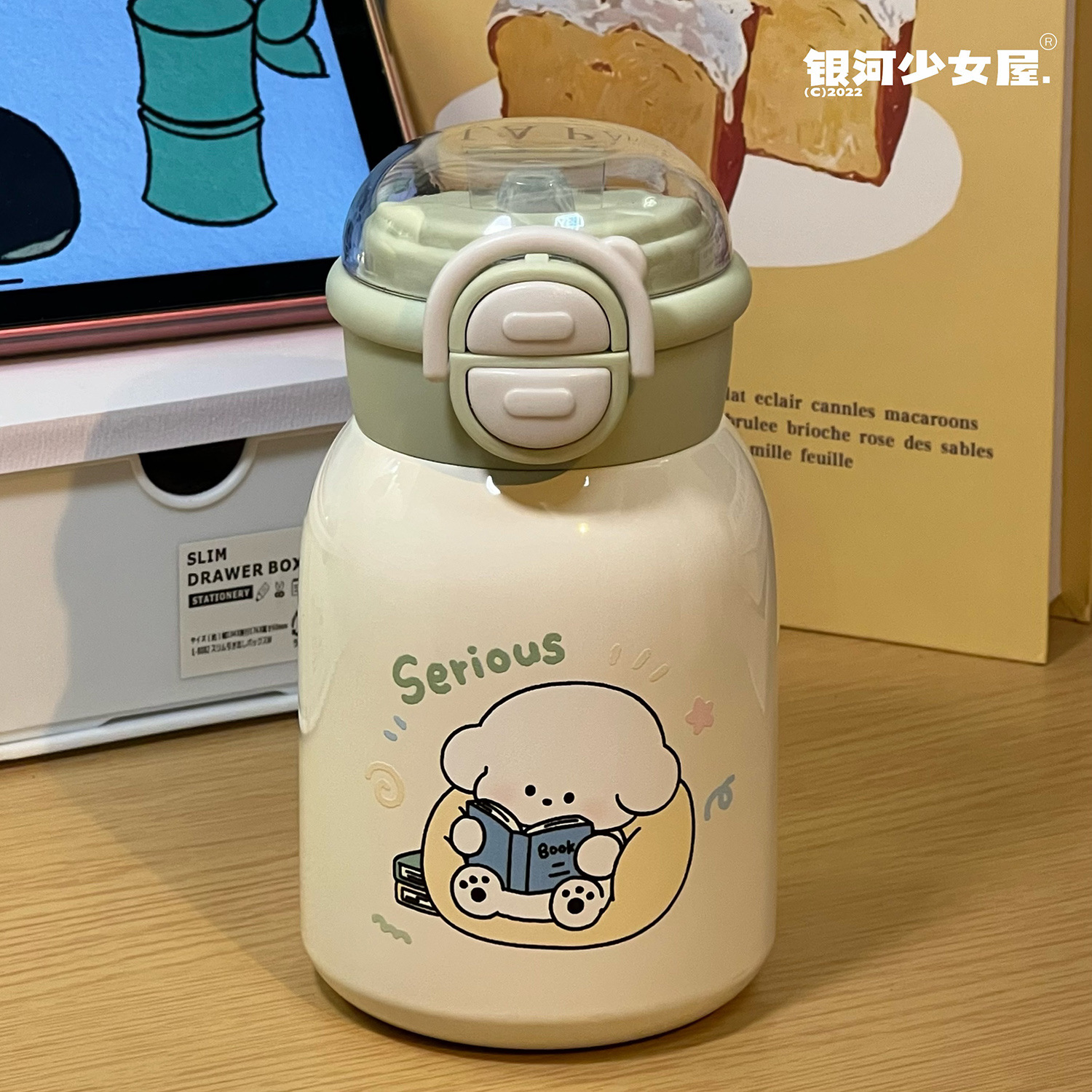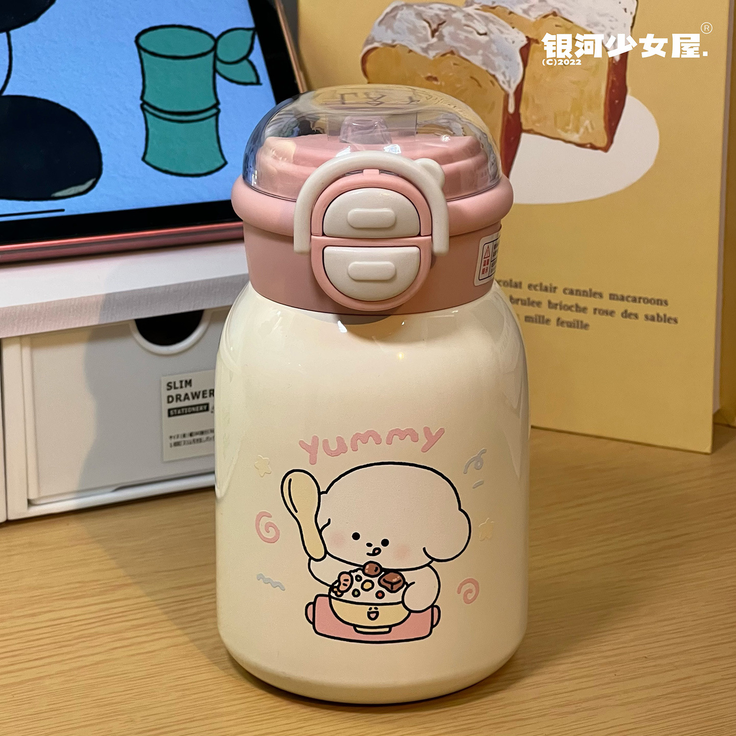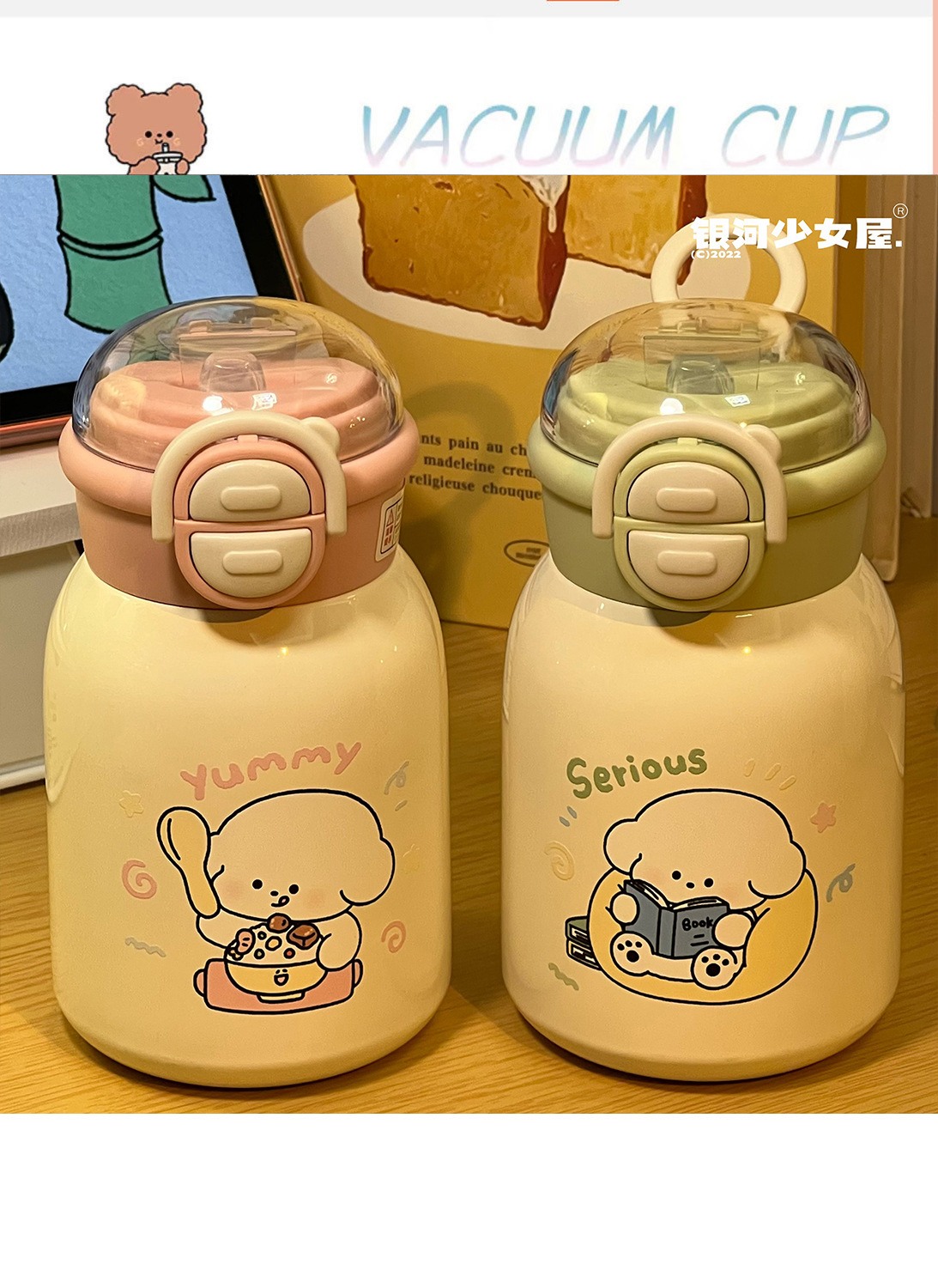 간단한 보온병 컵 Ins 소녀 높은 가치 316 스테인레스 스틸 휴대용 밀짚 새로운 귀여운 학생 만화 물 컵스토어 가기