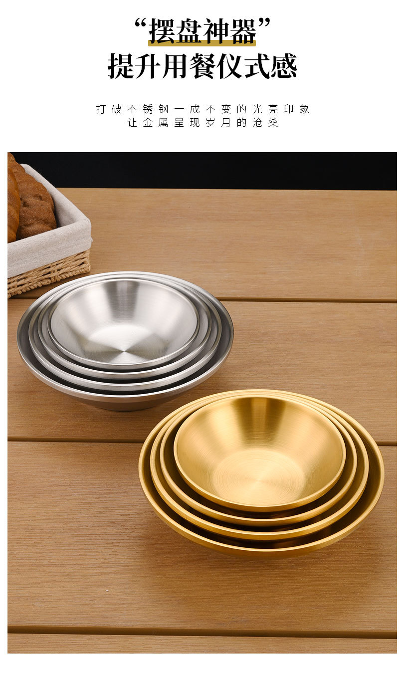 한국식 스테인레스 스틸 국수 그릇 상업 황금라면 그릇 밥 그릇 뿔 그릇 이중층 절연 대형 수프 그릇