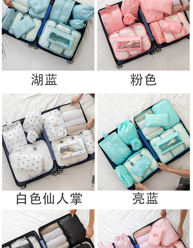 국경 간 여행 보관 가방 8 조각 여행 보관 세트 9 조각 세트 의류 분류 보관 가방 도매스토어 가기