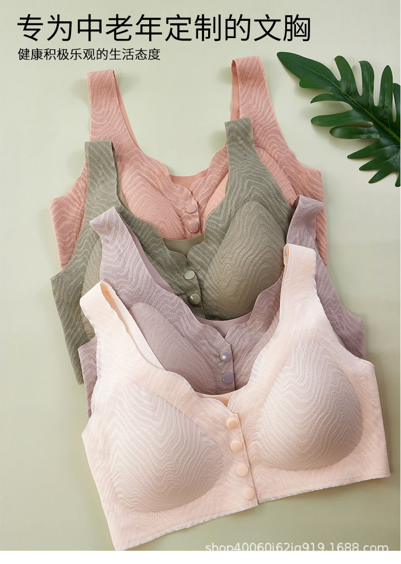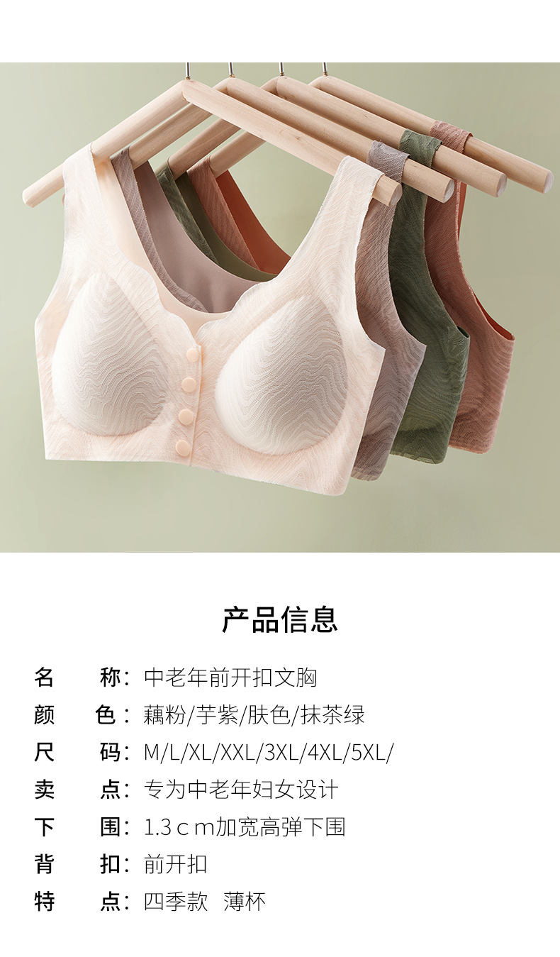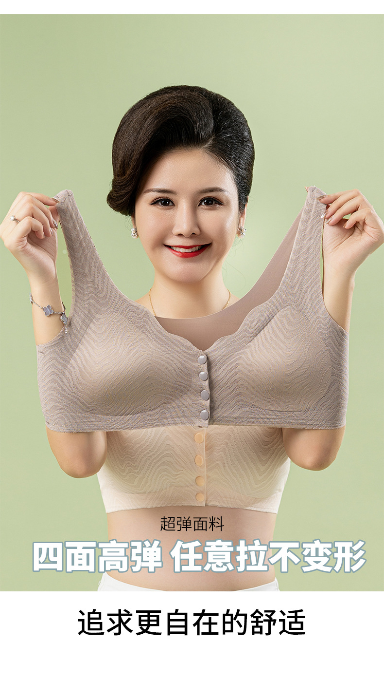 중년 및 노인 앞 버클 브라 무테 무술 통기성 브래지어 얇은 바디 아이스 실크 레이스 속옷 여름스토어 가기