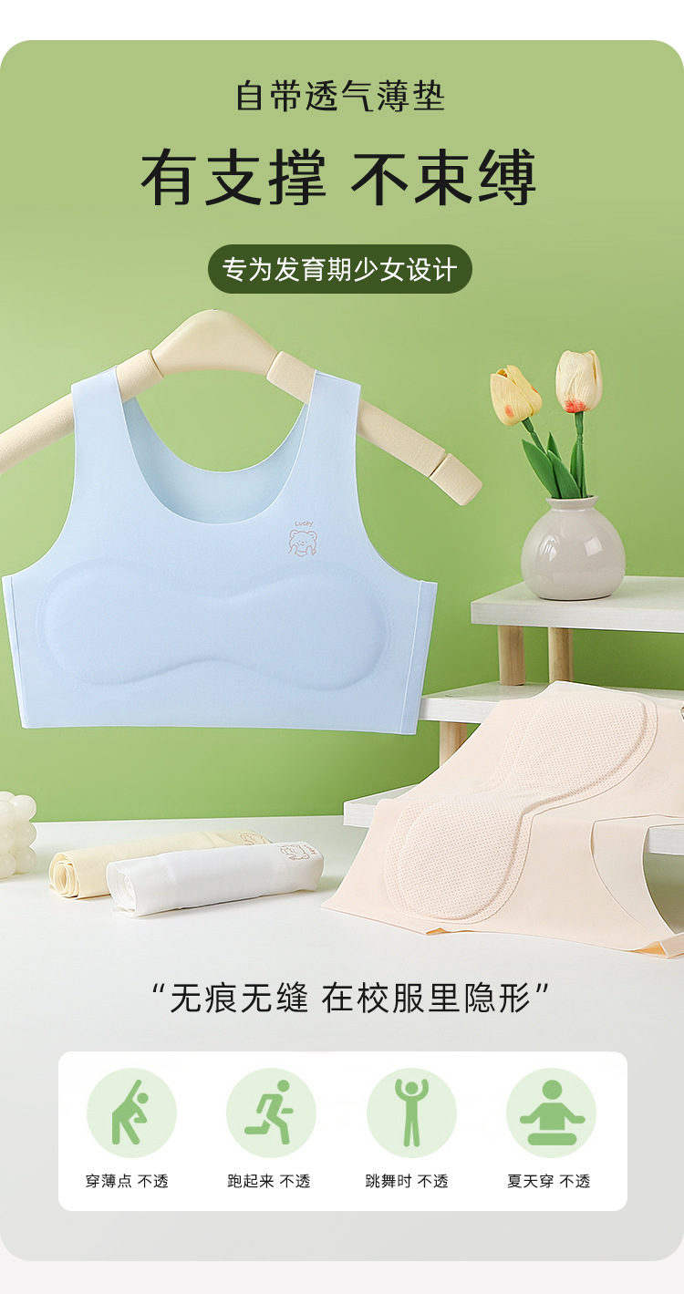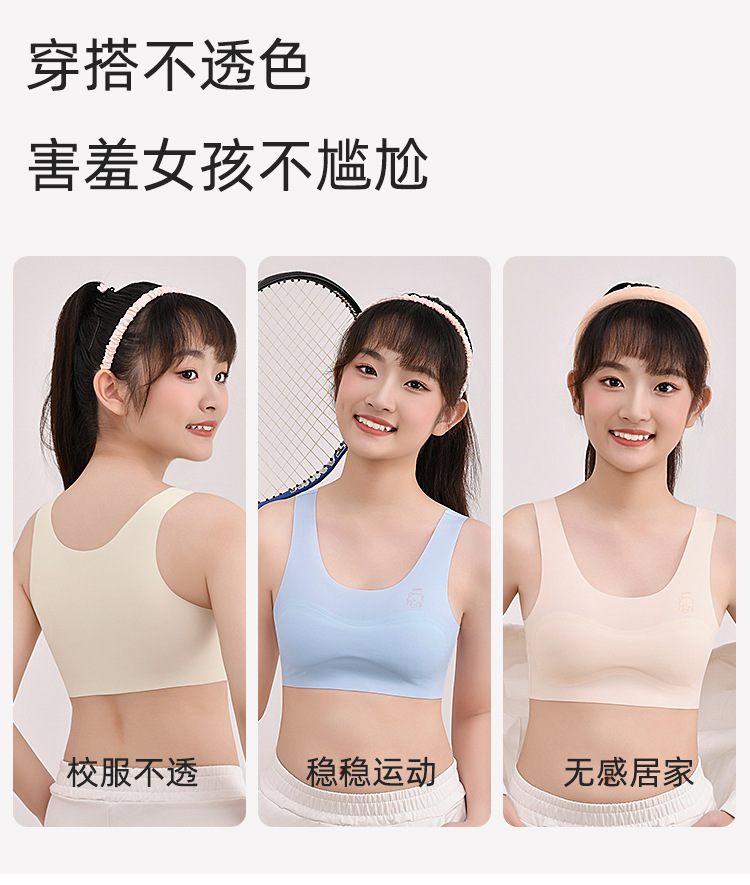 1 단계 소녀 개발 기간 스틸 링 속옷 가슴 패드 소녀 속옷 원활한 적합 불투명 소녀 속옷 없음스토어 가기