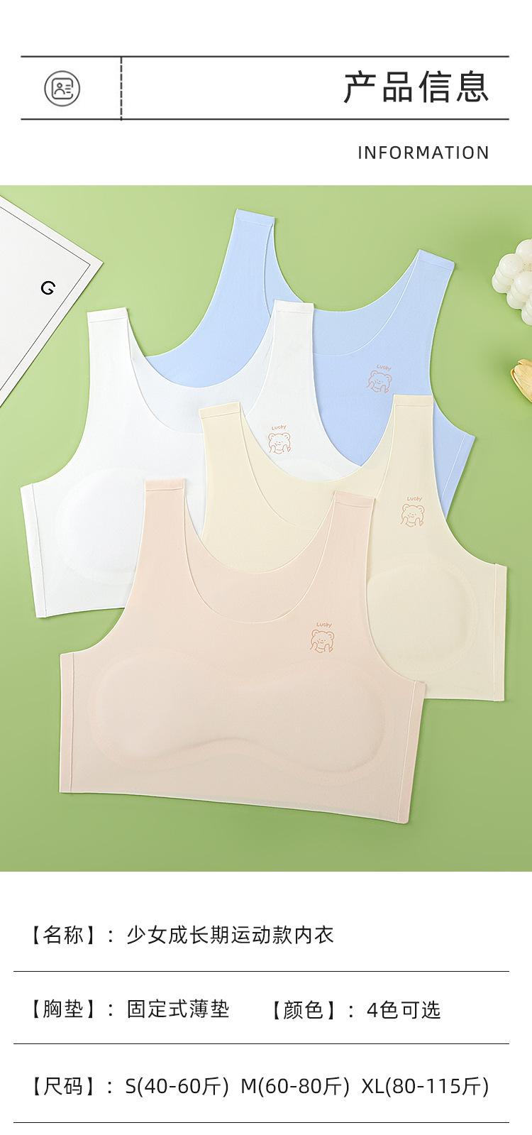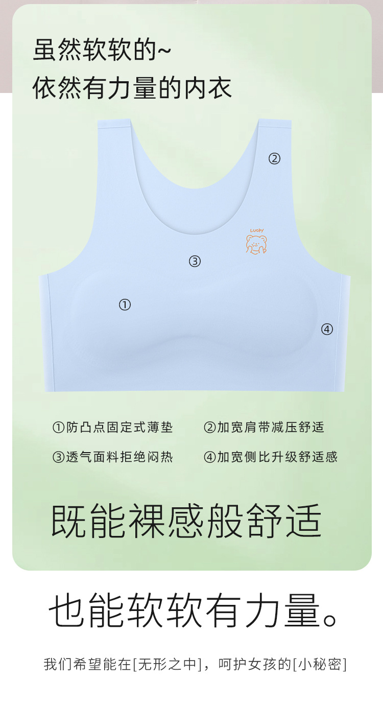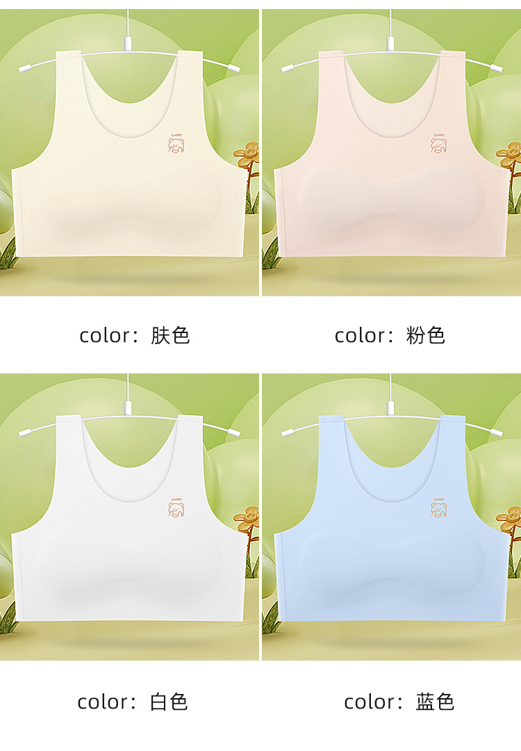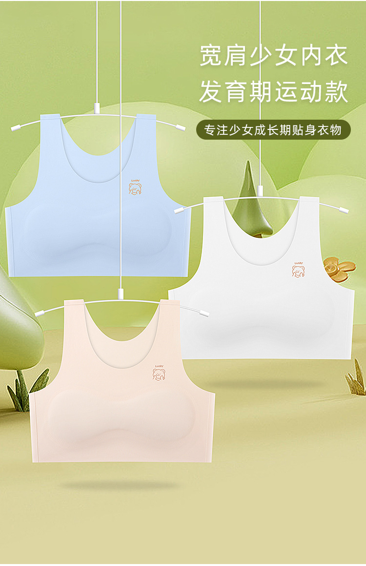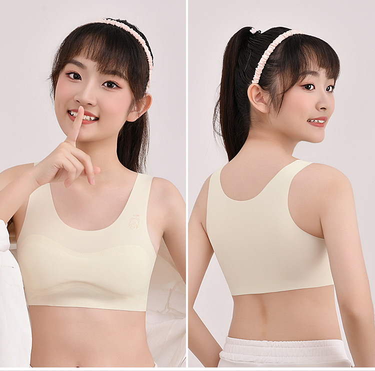 1 단계 소녀 개발 기간 스틸 링 속옷 가슴 패드 소녀 속옷 원활한 적합 불투명 소녀 속옷 없음