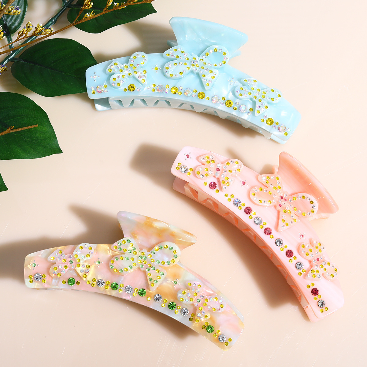 새로운 하이 엔드 센스 다이아몬드가 박힌 3 차원 활 머리핀 우아한 하이 엔드 센스 대형 헤드웨어 상어 클립 스위트 여성용스토어 가기