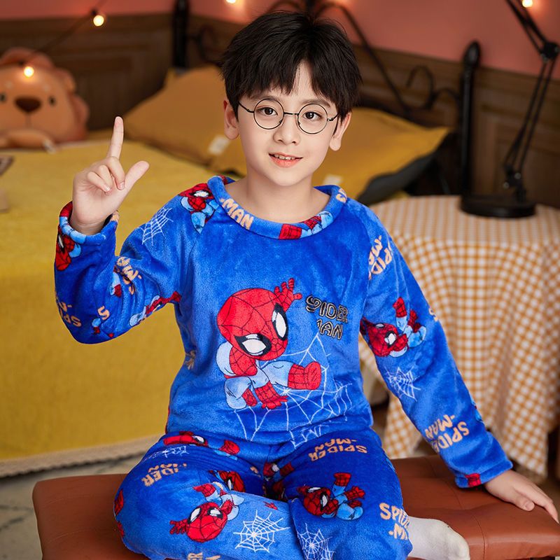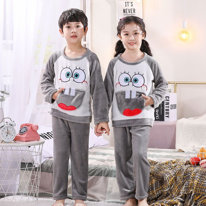 가을과 겨울 어린이 플란넬 파자마 만화 소년 소녀 아기 나이 많은 아이들의 따뜻한 산호 양털 집 옷 세트스토어 가기