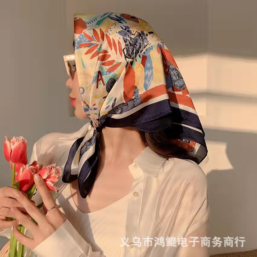 상하이 스토리 같은 스타일 선물 실크 스카프 엄마 목도리 여성 시뮬레이션 실크 스카프 새로운 대형 사각형 스카프 실크 스카프스토어 가기