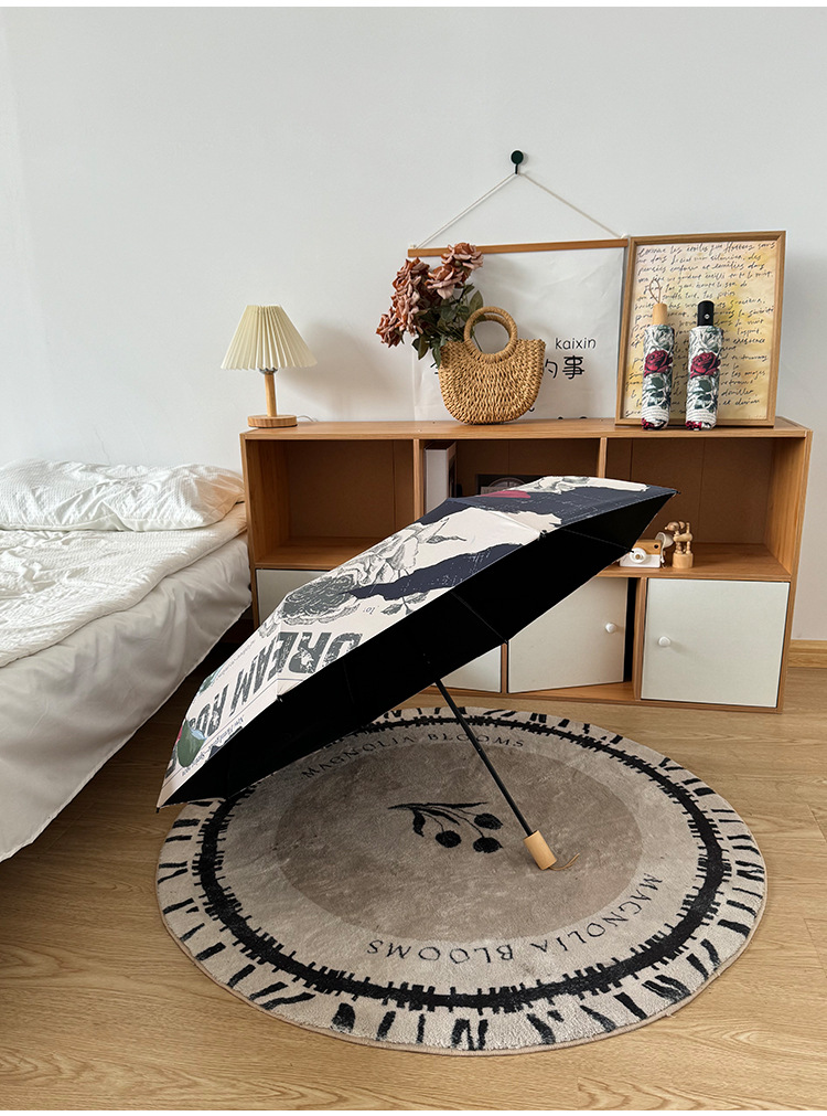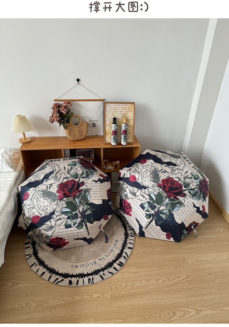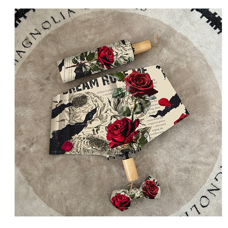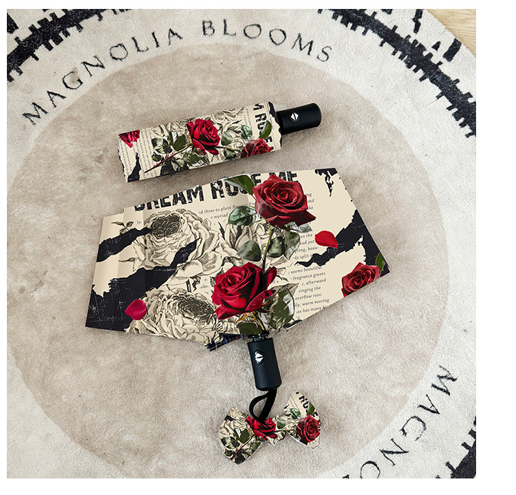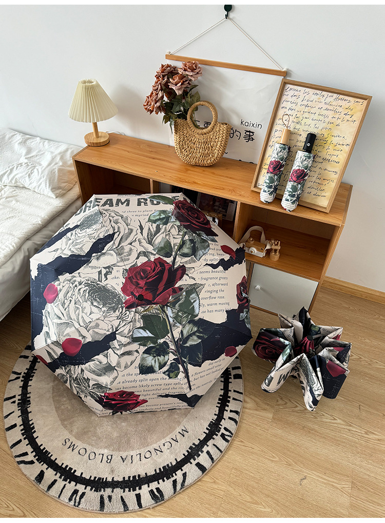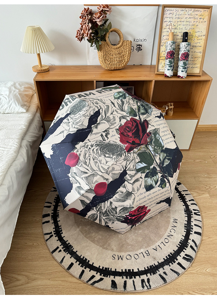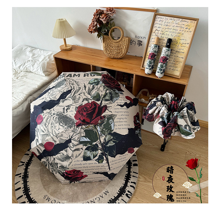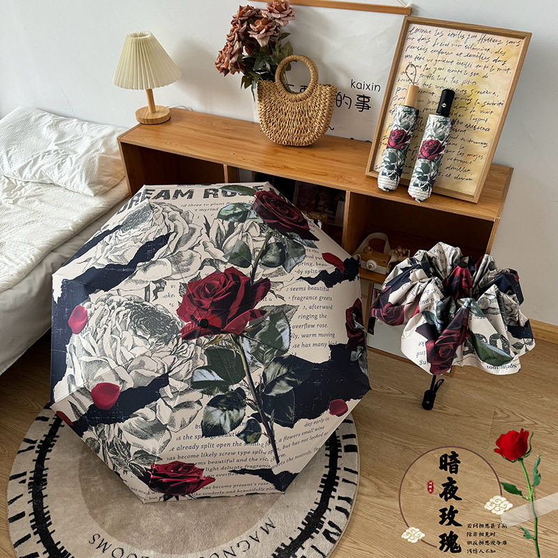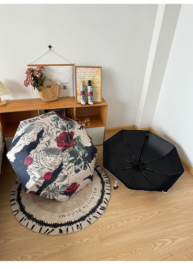 Ins Retro 홍콩 바람 우산 여성용 장미 자동 접히는 햇빛과 비 이중 목적 햇빛 UV 보호 태양 우산