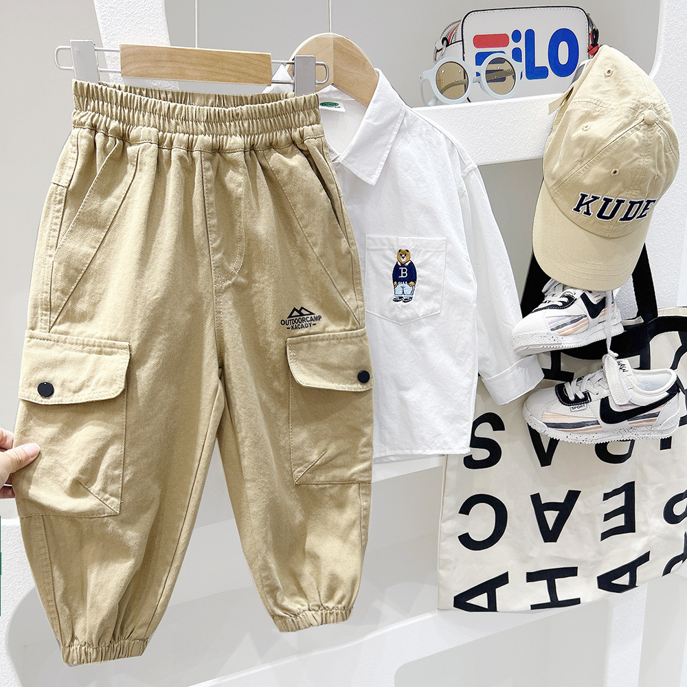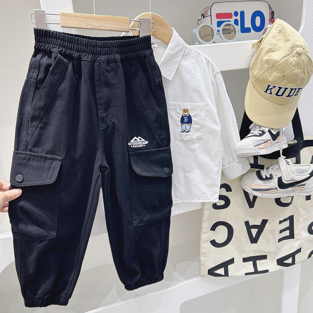 2024 가을 소년 바지 봄과 가을 단색 중추절 유행 새로운 어린이 캐주얼 바지 한국 스타일