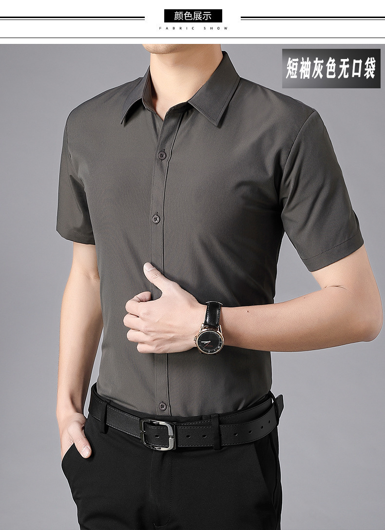 여름 캐주얼 반소매 셔츠 남성 반소매 단색 비즈니스 작업복 셔츠 전문 원피스 블루 남성복