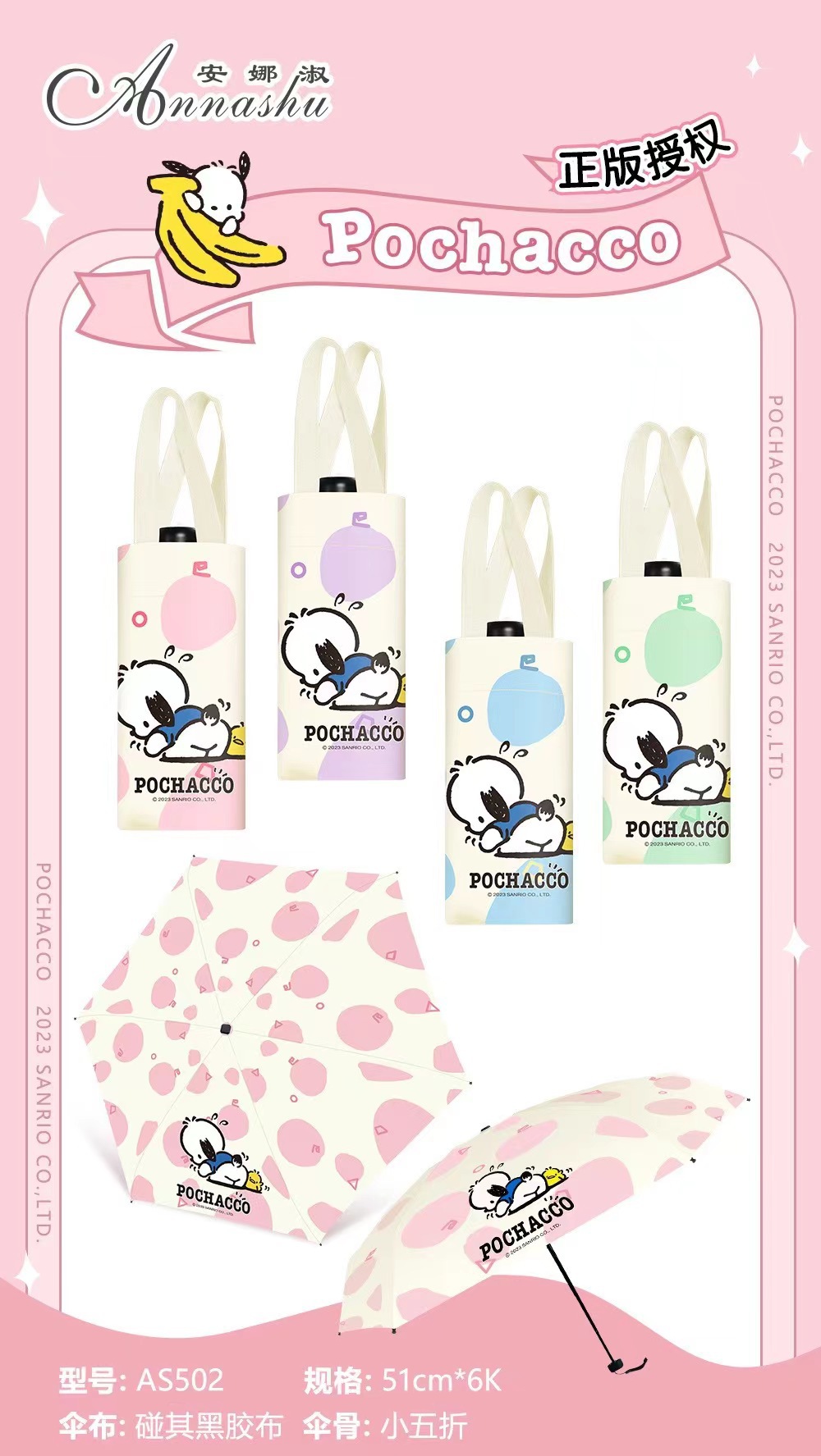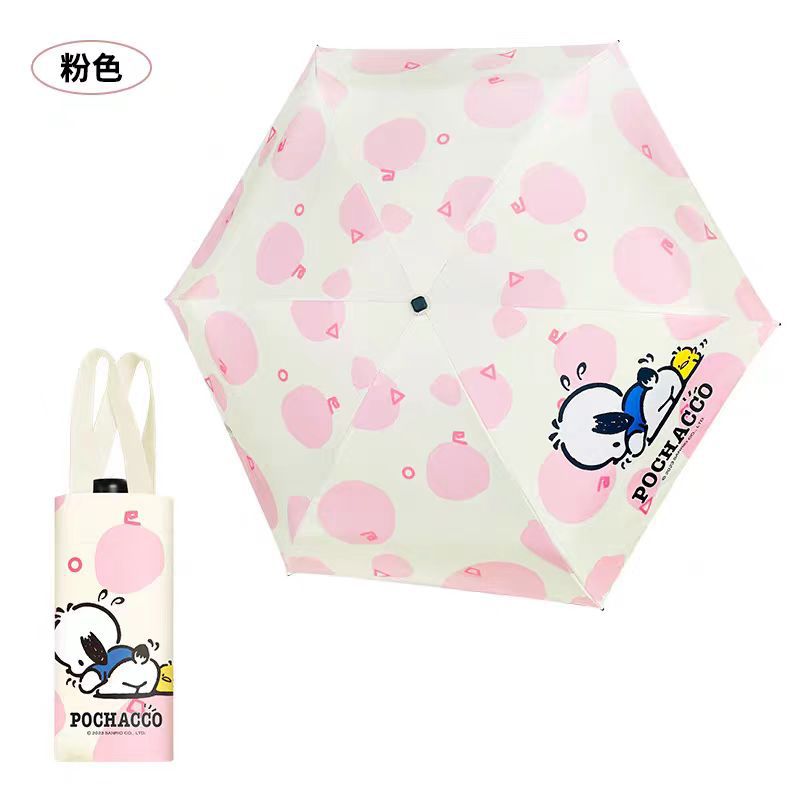 정품 산리오 하프 폴드 6 본 캡슐 미니 우산 써니 우산 블랙 접착제 선스크린 파차 작은 핸드백스토어 가기