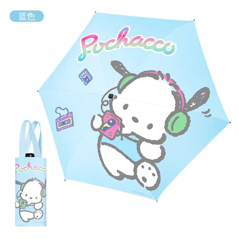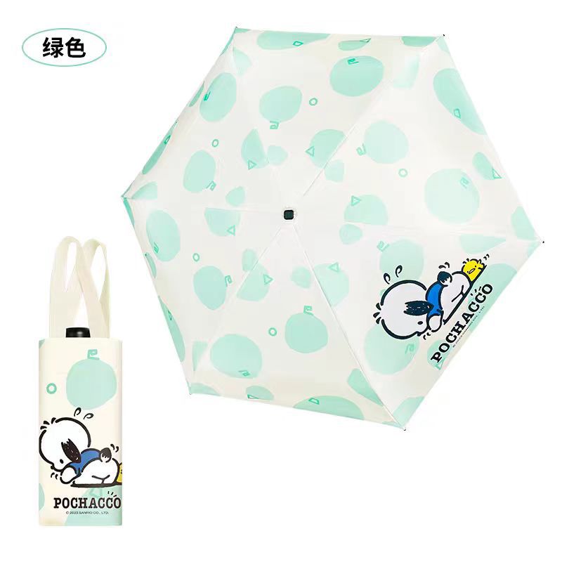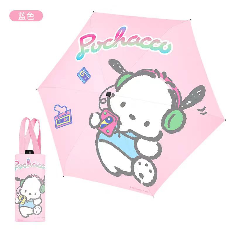 정품 산리오 하프 폴드 6 본 캡슐 미니 우산 써니 우산 블랙 접착제 선스크린 파차 작은 핸드백