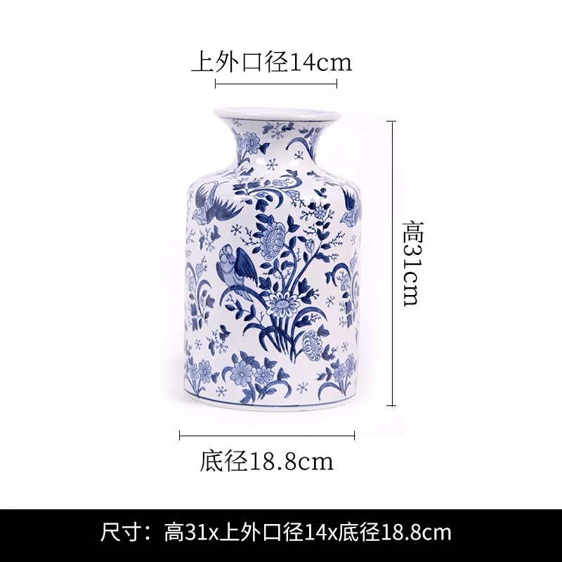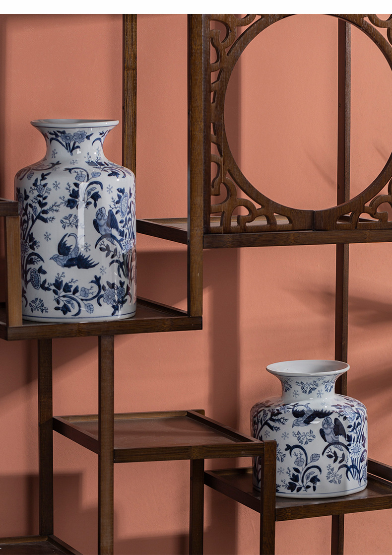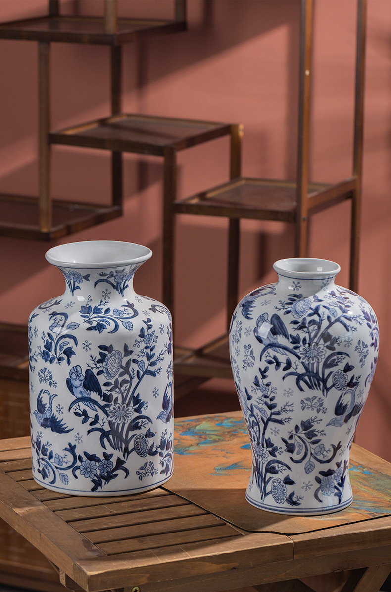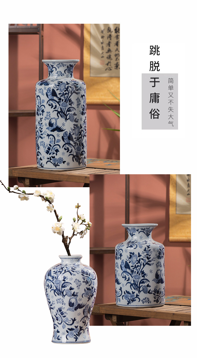 파란색과 흰색 도자기 세라믹 꽃병 수경 녹색 식물 꽃 고온 발사 거실 TV 캐비닛 세라믹 꽃병 장식품스토어 가기
