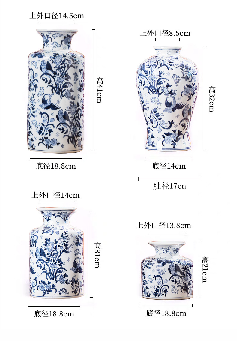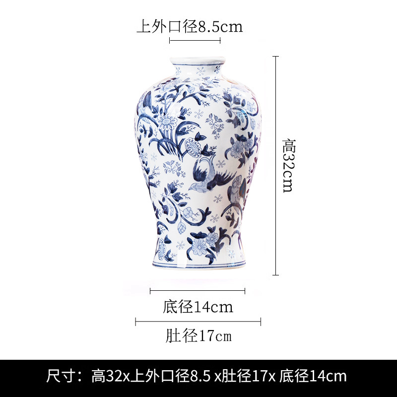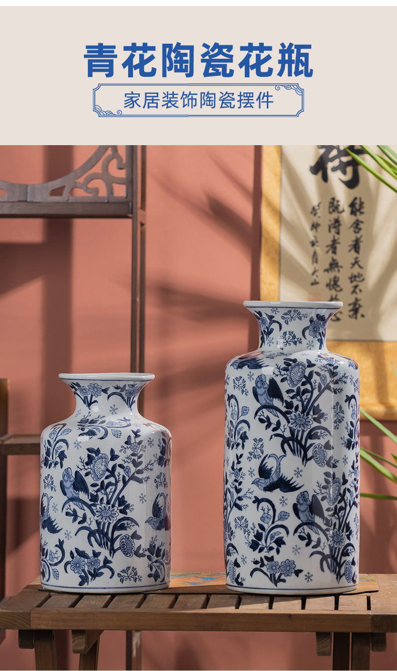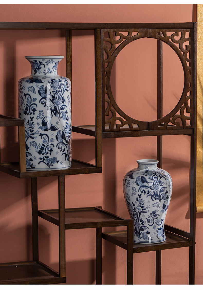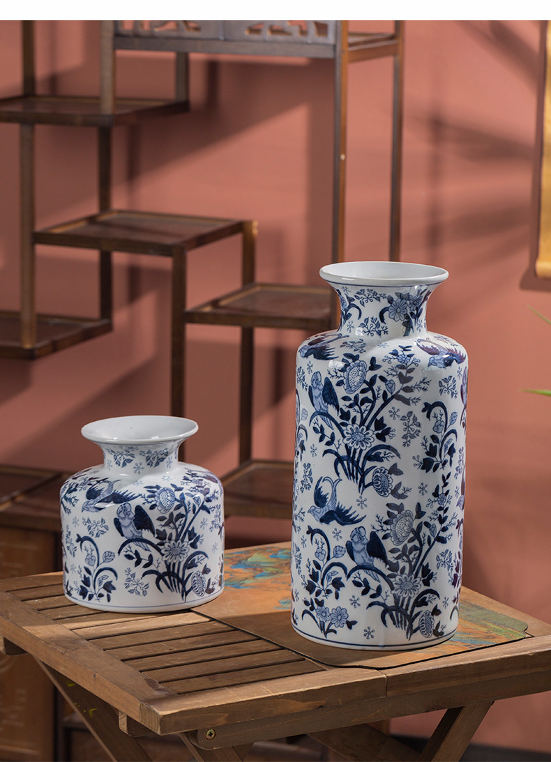 파란색과 흰색 도자기 세라믹 꽃병 수경 녹색 식물 꽃 고온 발사 거실 TV 캐비닛 세라믹 꽃병 장식품스토어 가기