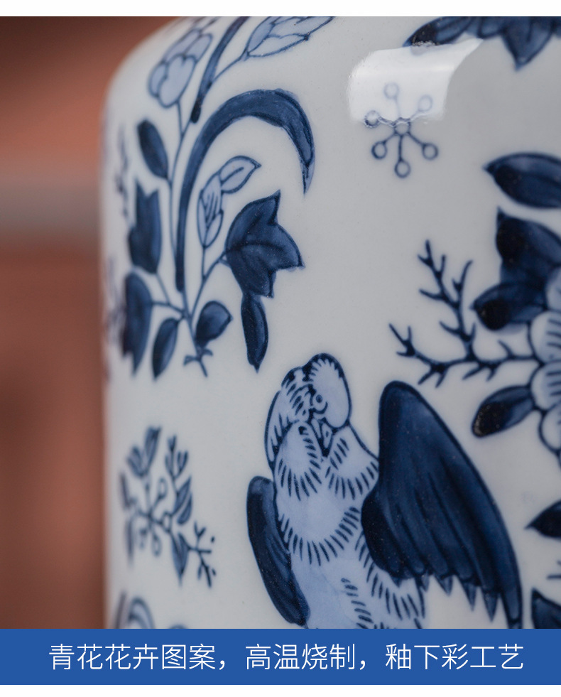 파란색과 흰색 도자기 세라믹 꽃병 수경 녹색 식물 꽃 고온 발사 거실 TV 캐비닛 세라믹 꽃병 장식품