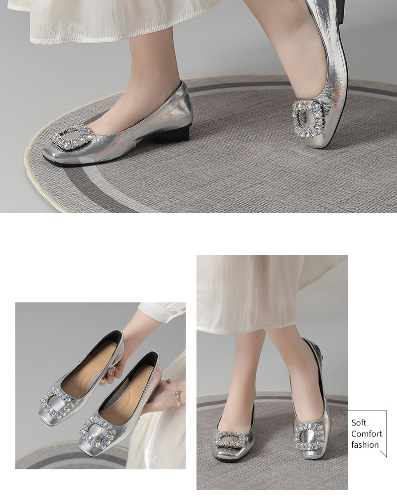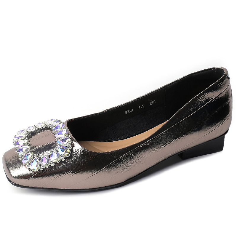 2024 년 여름과 가을 새로운 정품 가죽 슬립 온 패션 싱글 레이어 신발 얕은 프랑스 소프트 하단 사계절 버클 플랫 여성 신발