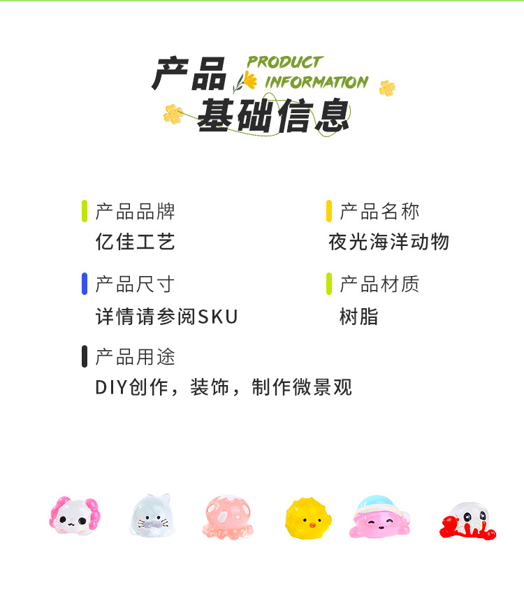 새로운 빛나는 해양 동물 시리즈 마이크로 풍경 물고기 탱크 조경 장식품 미니 귀여운 데스크탑 장식품 작은 액세서리