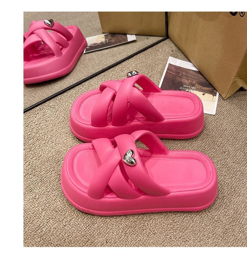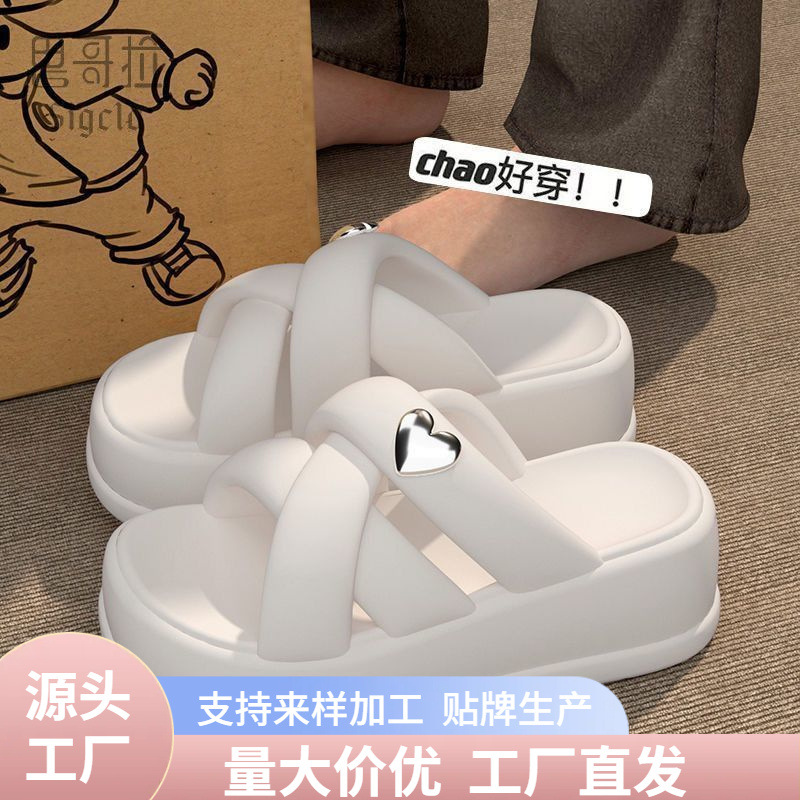 작은 사랑 ~ 여름 밟는 배설물 두꺼운 바닥 느낌 높은 색상 가치 여성의 여름 새 샌들과 슬리퍼 작업