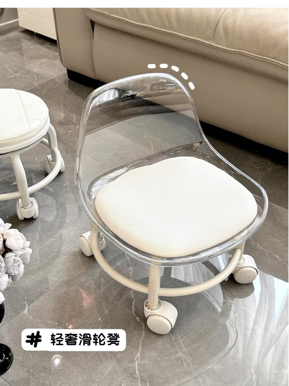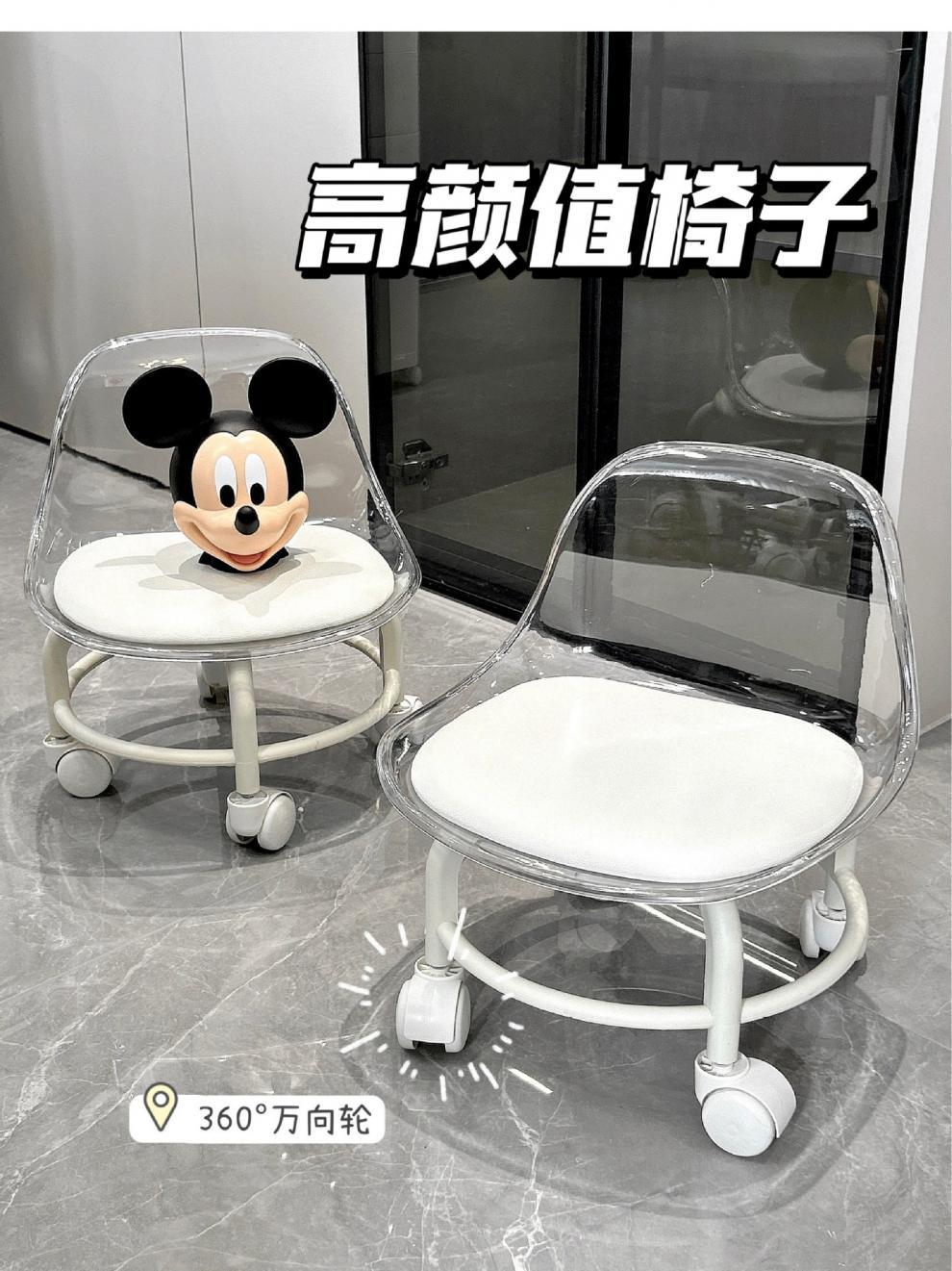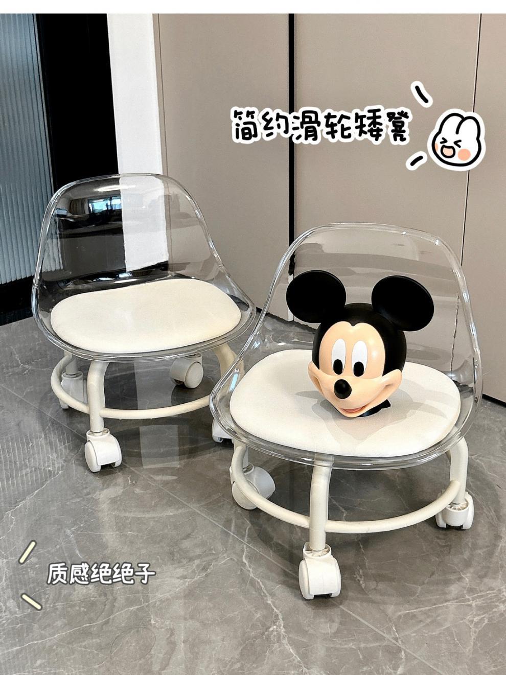 아크릴 풀리 낮은 의자 유니버설 휠 어린이 가정용 거실 의자 발 매트 라이트 럭셔리 높은 감각 의자 등받이 의자스토어 가기