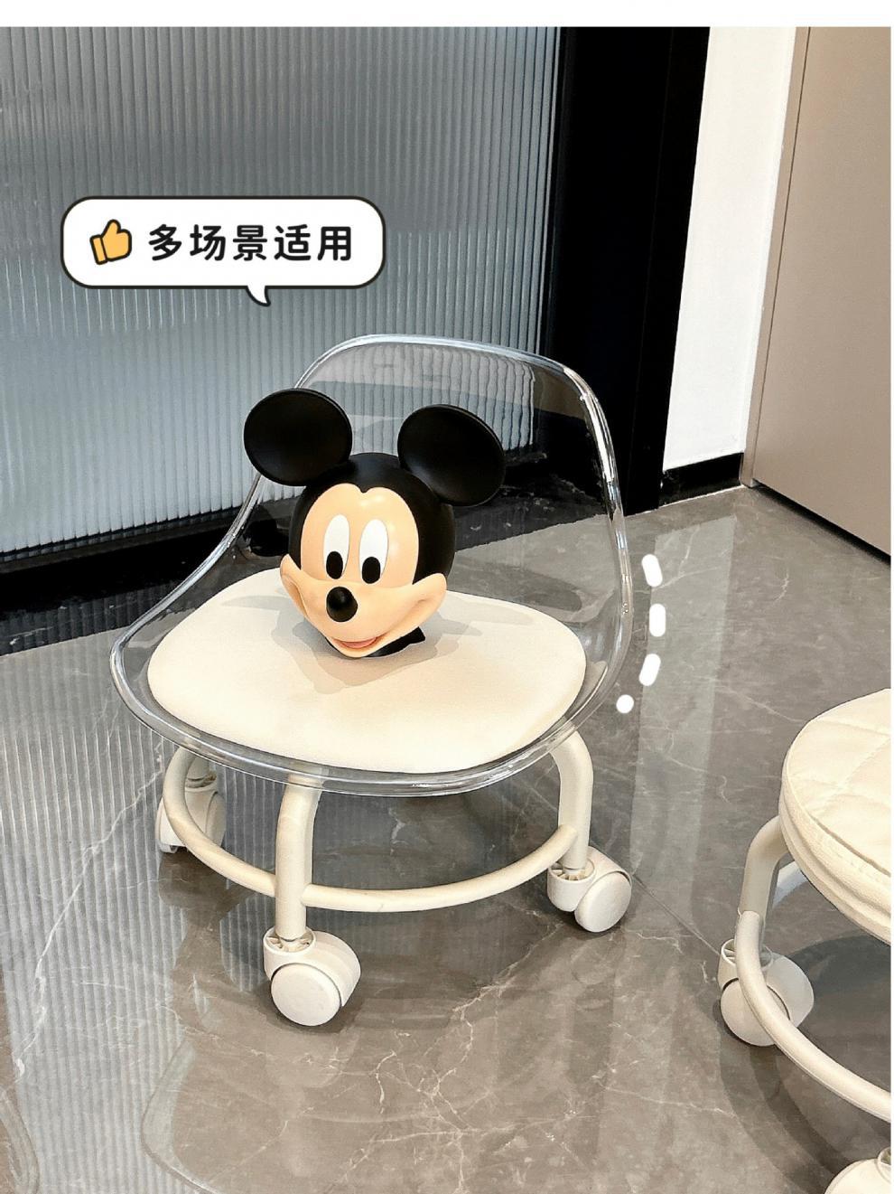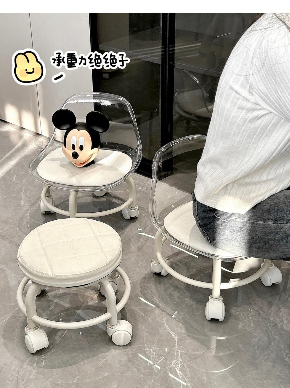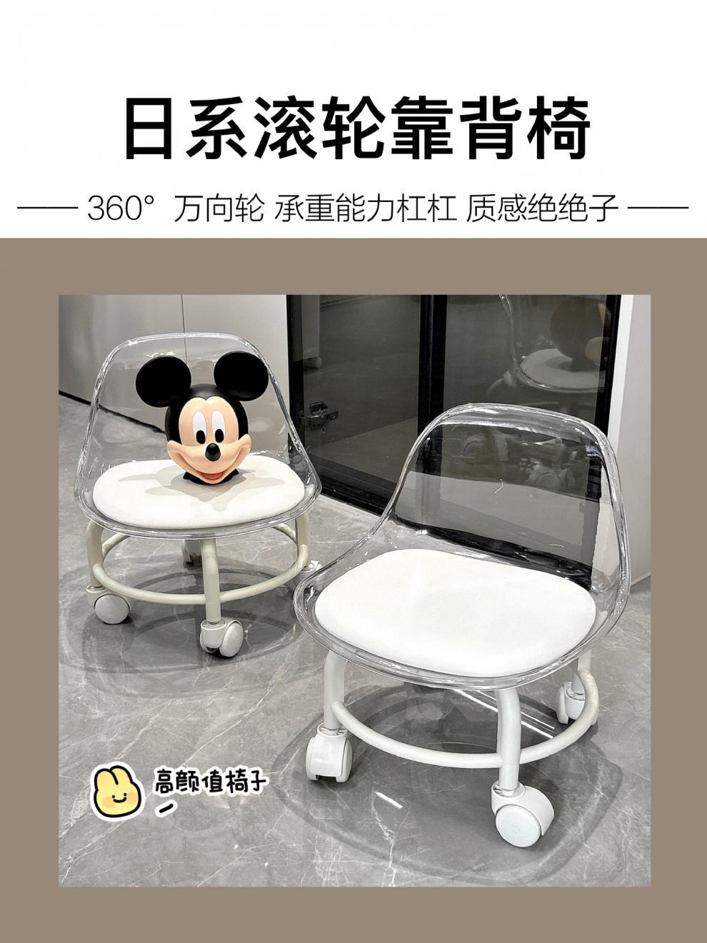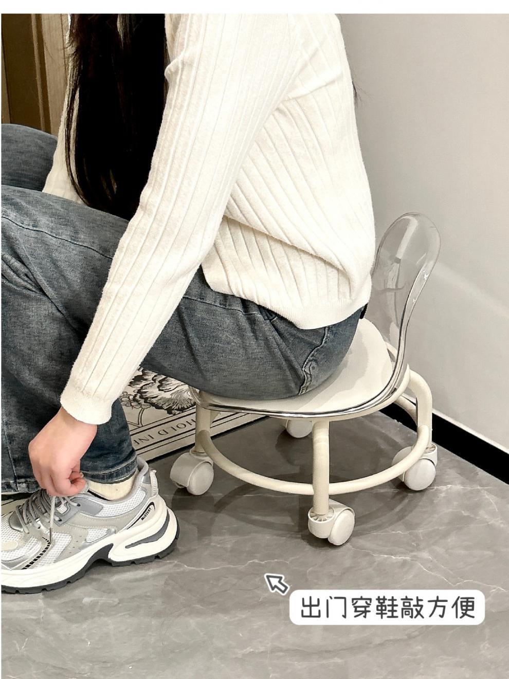 아크릴 풀리 낮은 의자 유니버설 휠 어린이 가정용 거실 의자 발 매트 라이트 럭셔리 높은 감각 의자 등받이 의자스토어 가기