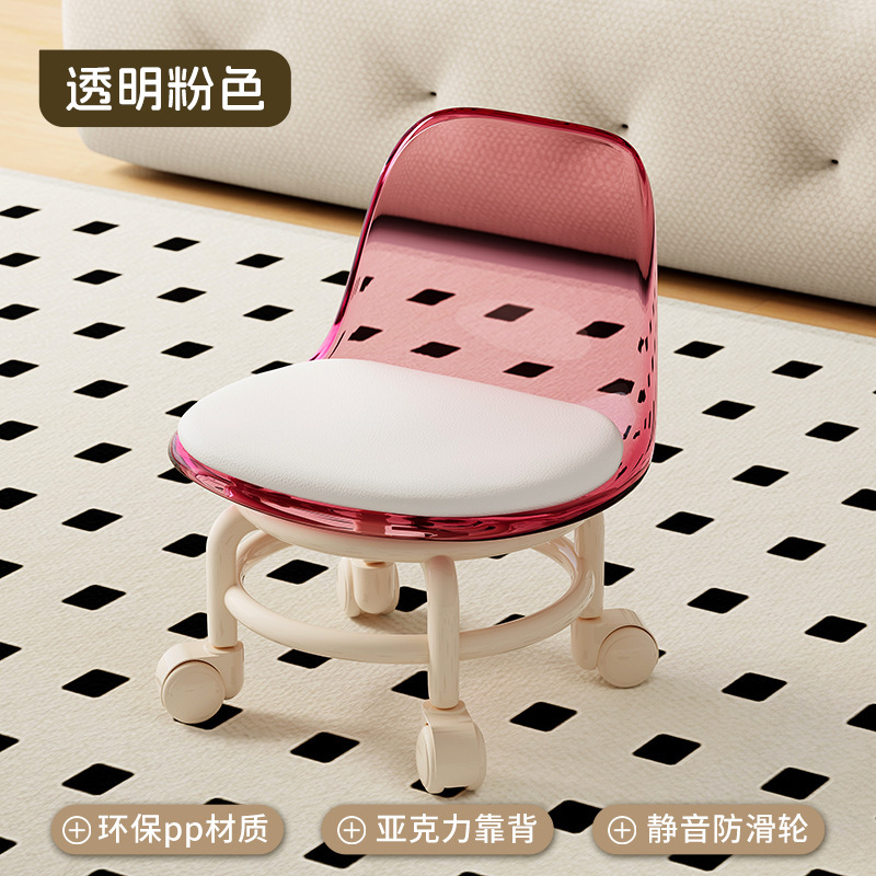 아크릴 풀리 낮은 의자 유니버설 휠 어린이 가정용 거실 의자 발 매트 라이트 럭셔리 높은 감각 의자 등받이 의자