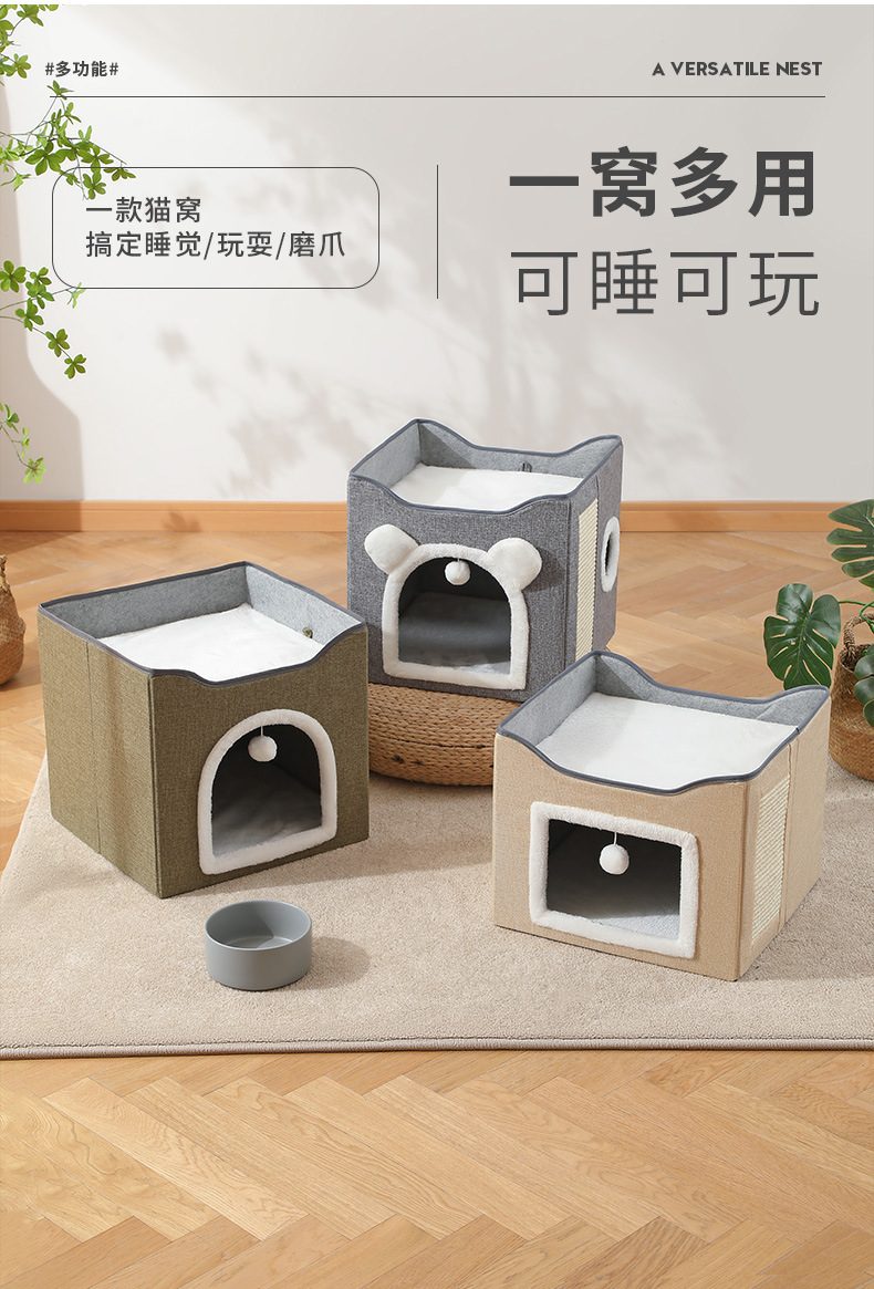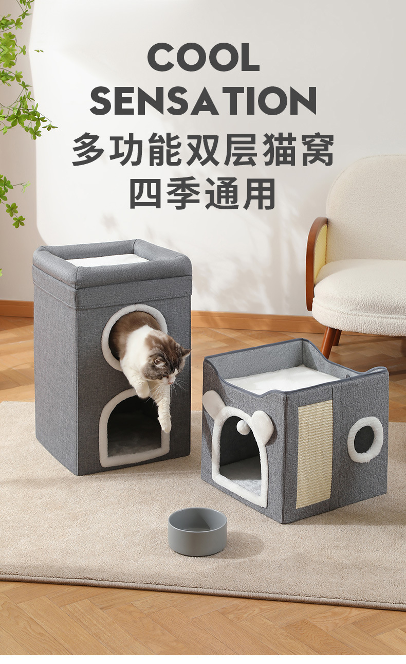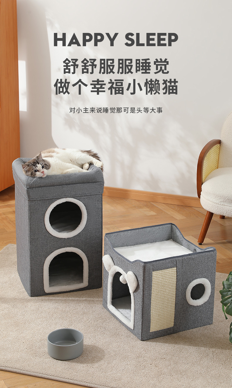 국경 반 폐쇄 사이 살 접이식 더블 도어 3 층 고양이 둥지 다기능 더블 레이어 고양이 스크래치 보드 고양이 연삭 발톱 하우스