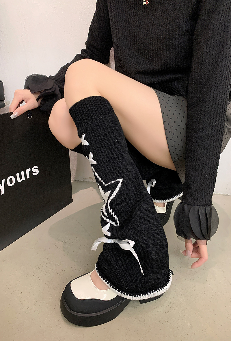 니트 플라 양말 여성 리본 스타 중간 송아지 양말 JK 뜨거운 소녀 맞춤형 송아지 커버 따뜻한 하위 문화 Y2K스토어 가기