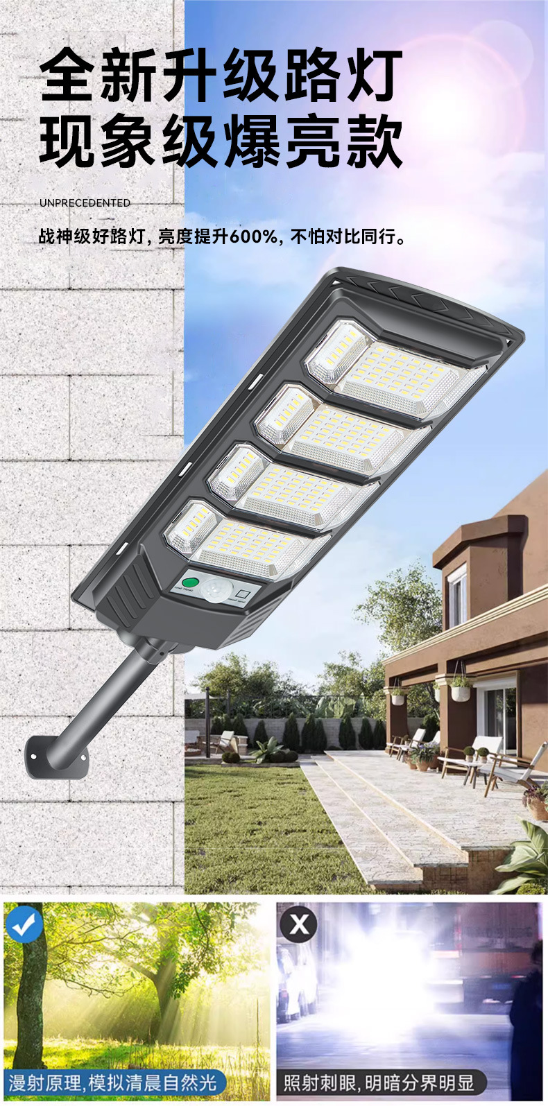국경 LED 야외 유도 벽 조명 도로 어두운 자동 밝은 태양 조명 야외 정원 조명 가로등스토어 가기