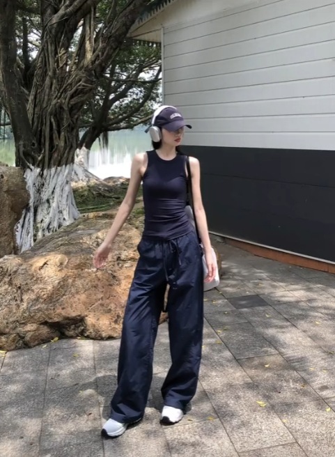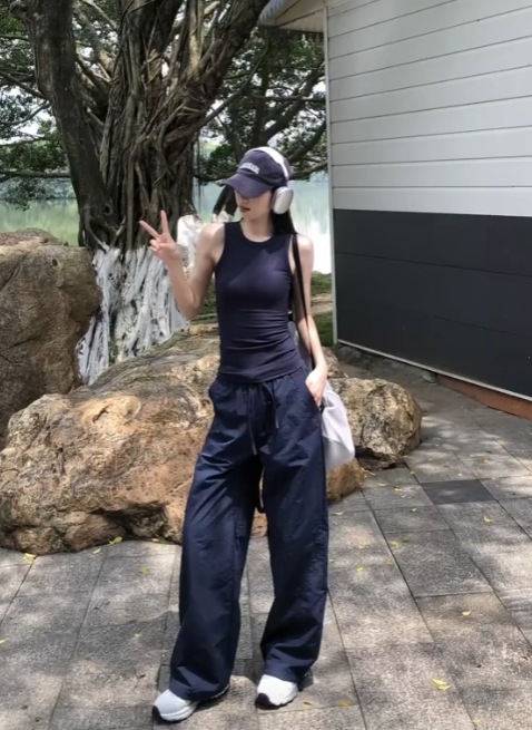 여성용 와이드 레그 공군복 바지 여름용 하이웨이스트 등산 스포츠 바지 루즈핏 캐주얼 방수 바지 다리가 길어보이는 디자인스토어 가기