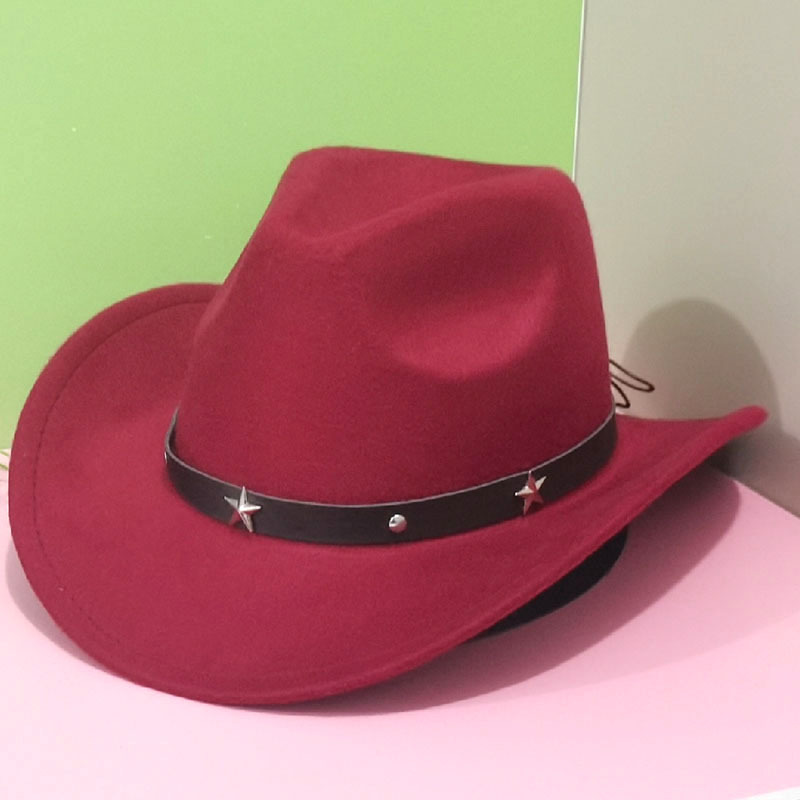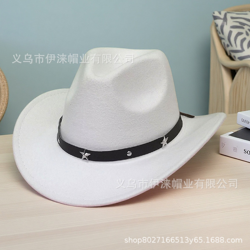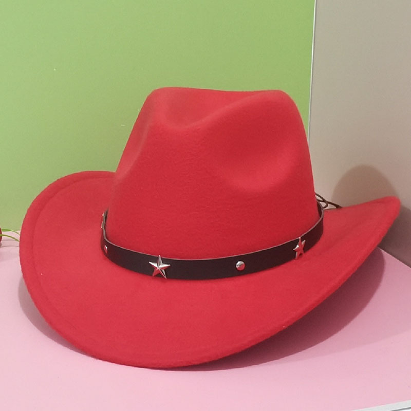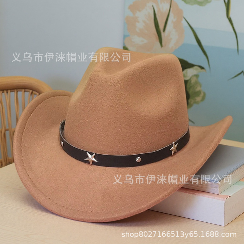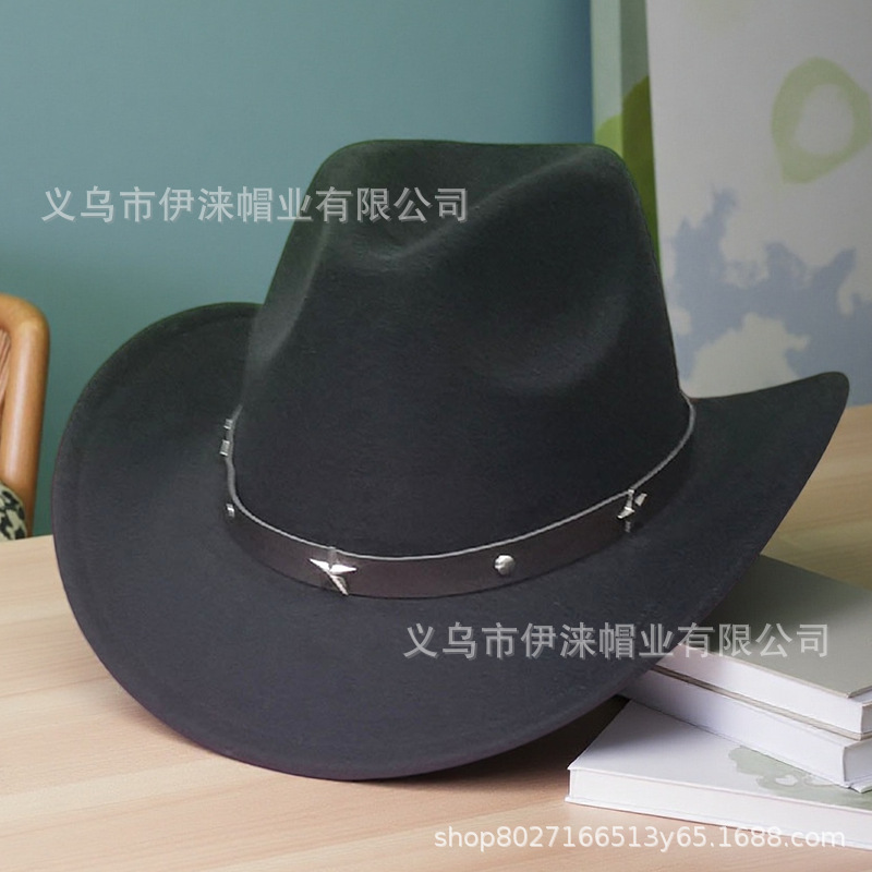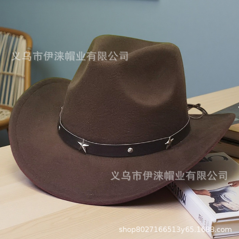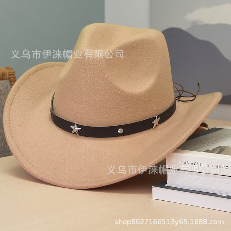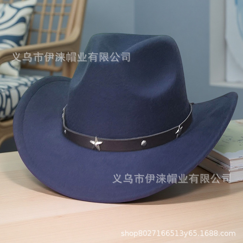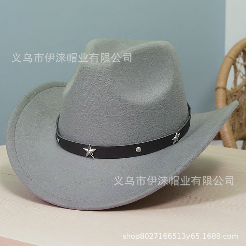 아마존 가을 겨울 모직 모자 서부 카우보이 모자 재즈 모자 별 모양 액세서리 남녀 커플 모자 펠트 모자