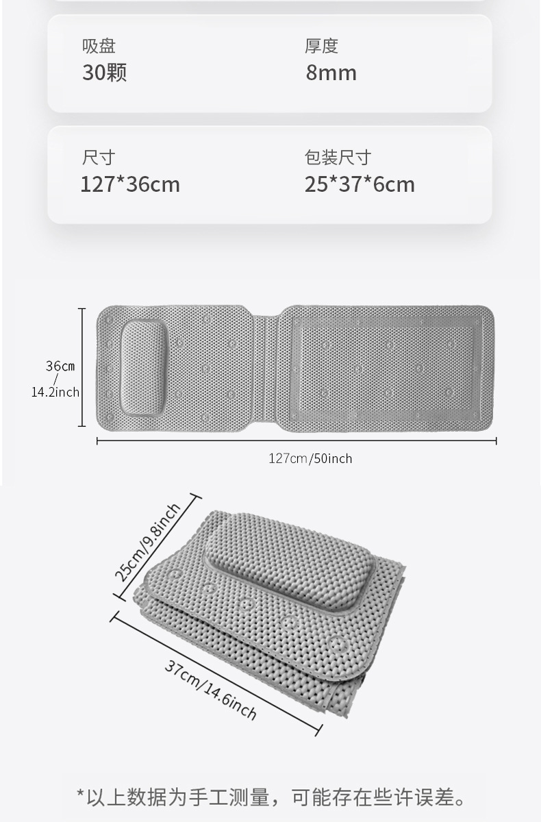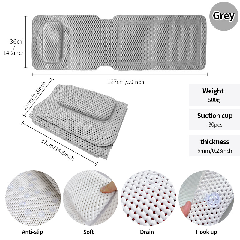 PVC 욕실 목욕 매트 비 슬립 반대로 드롭 방지 목욕 흡입 컵 베개 등받이 목욕 매트 가정용 스파 목욕