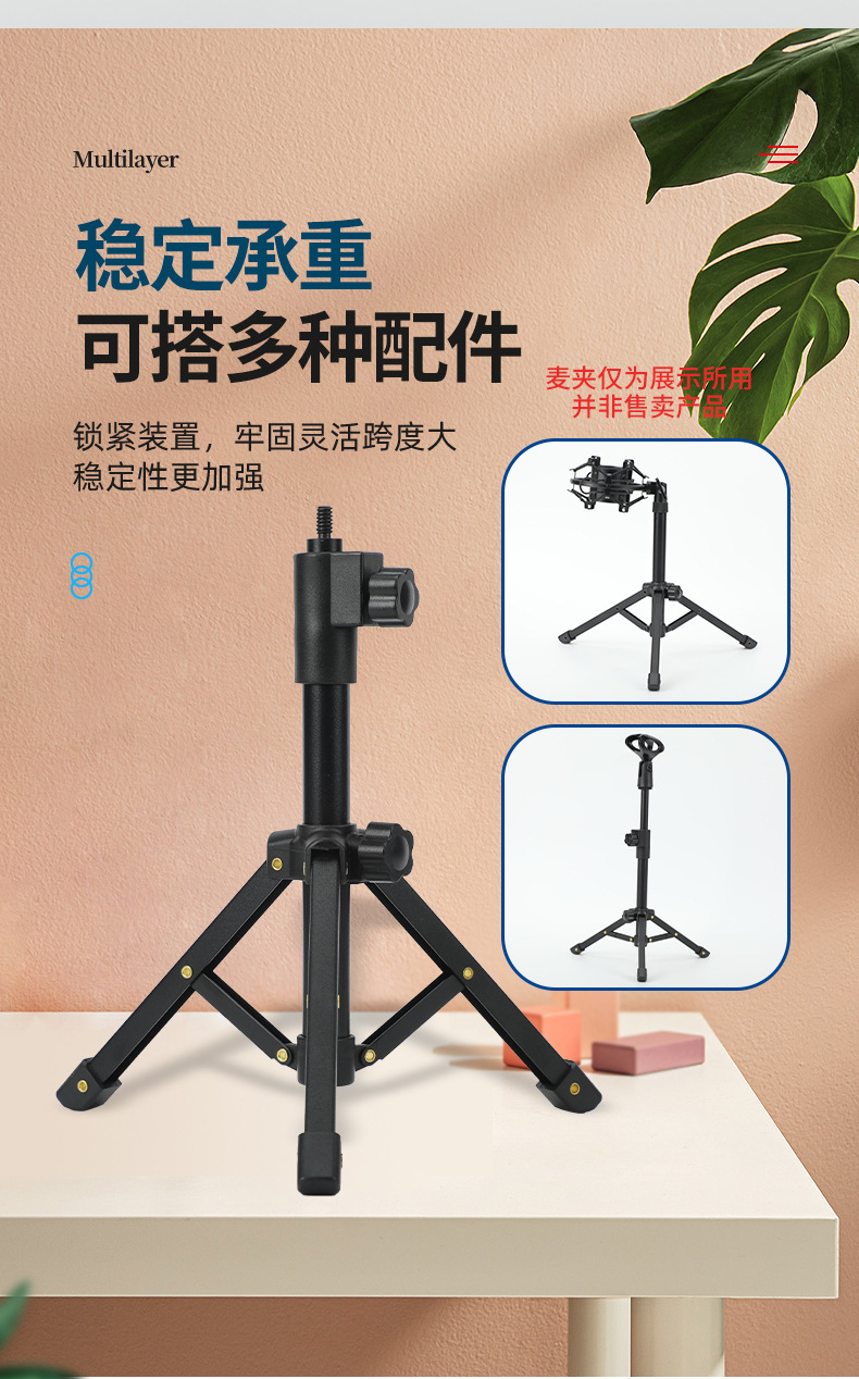 휴대 전화 라이브 방송 프로젝터 마이크 스탠드 데스크탑 범용 접이식 텔레스코픽 휴대용 삼각대 금속 스탠드