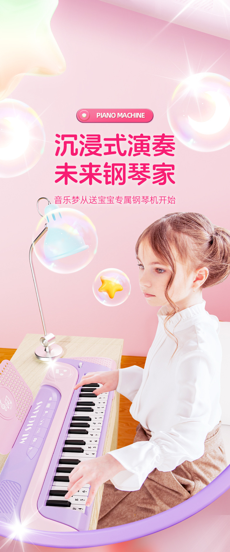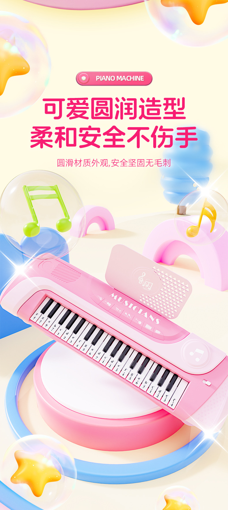 어린이 피아노 장난감 초보자를위한 마이크가있는 다기능 전자 오르간 3-6 세 아기 조기 교육 소녀 1