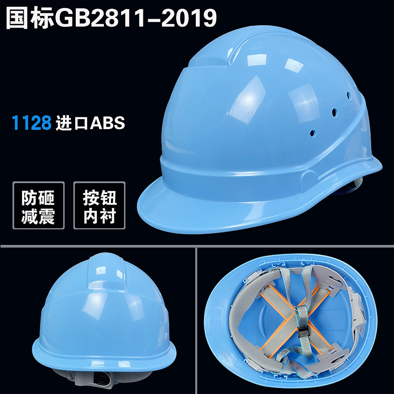 롱위안 안전모 건설 현장 공사용 하늘색 연한 파란색 ABS 국가 표준 통기성 강화 로고 인쇄