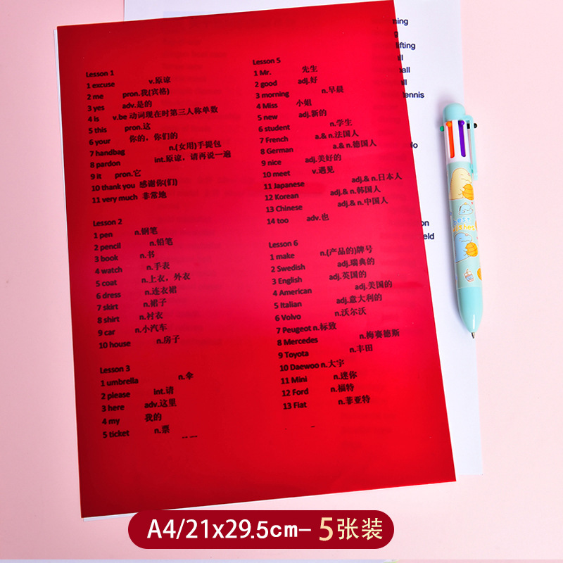Pvc 빨간색 플라스틱 시트 단어 차단 스칼렛 문자 투명 필터 필름 자체 테스트 카드 필터 스칼렛 문자 필름 A4 마스크 필름