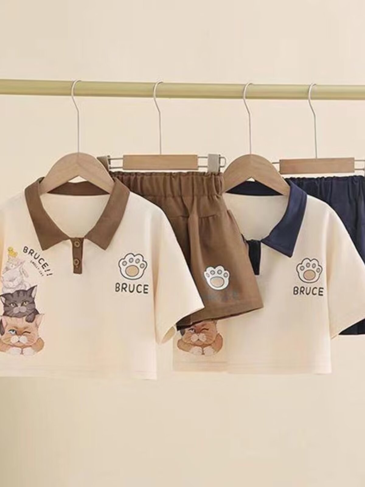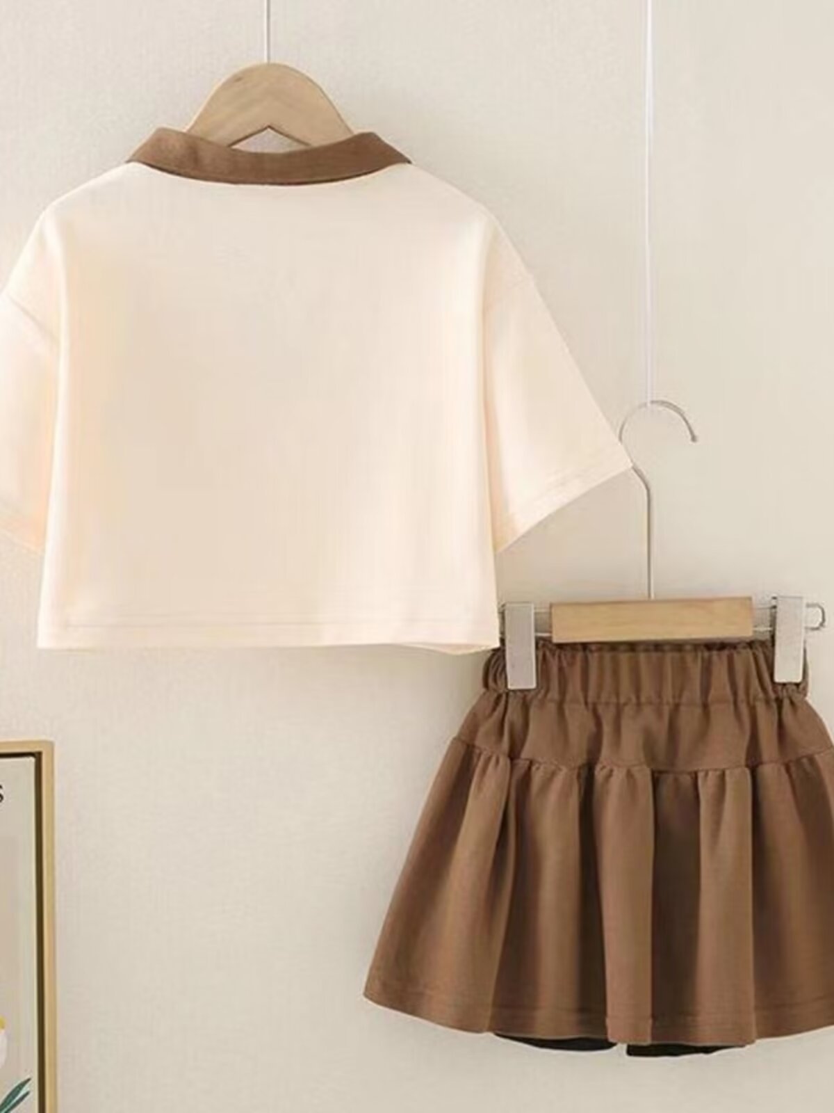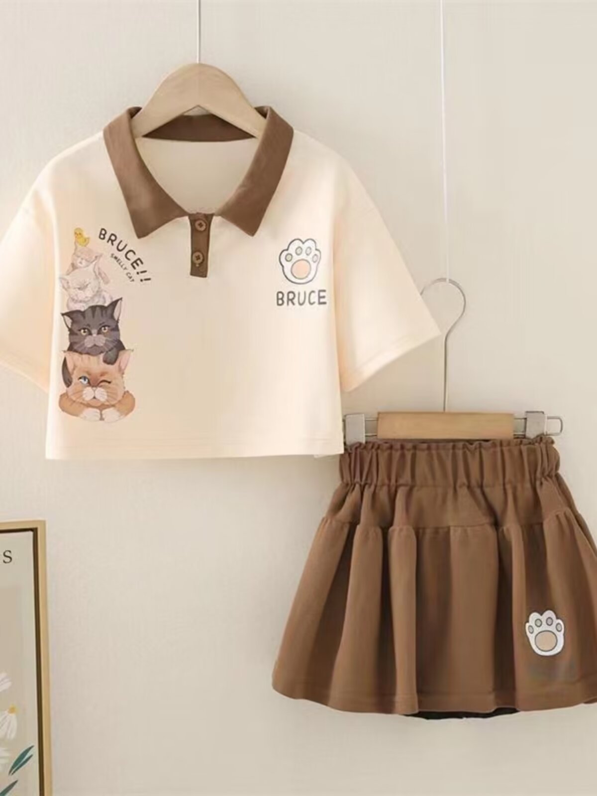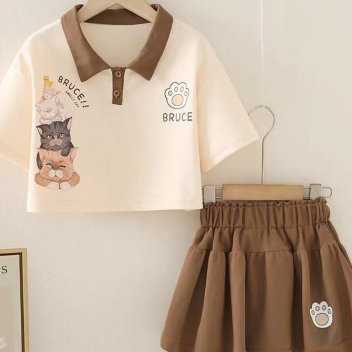 소녀 여름 반팔 원피스 2024 여름 새로운 스타일 서양식 캐주얼 중대형 어린이 폴로 셔츠 짧은 스커트 투피스 세트스토어 가기