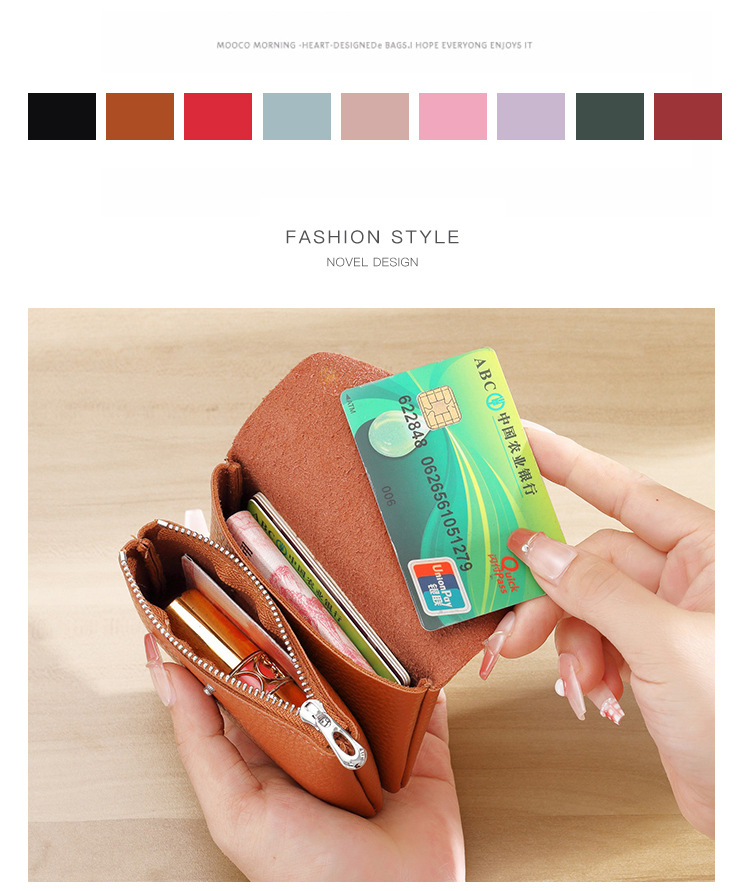 간단한 여성용 진짜 부드러운 가죽 동전 지갑 다기능 카드 홀더 여성용 대용량 작은 보석 동전 부드러운 가죽 지갑을 담을 수 있습니다스토어 가기