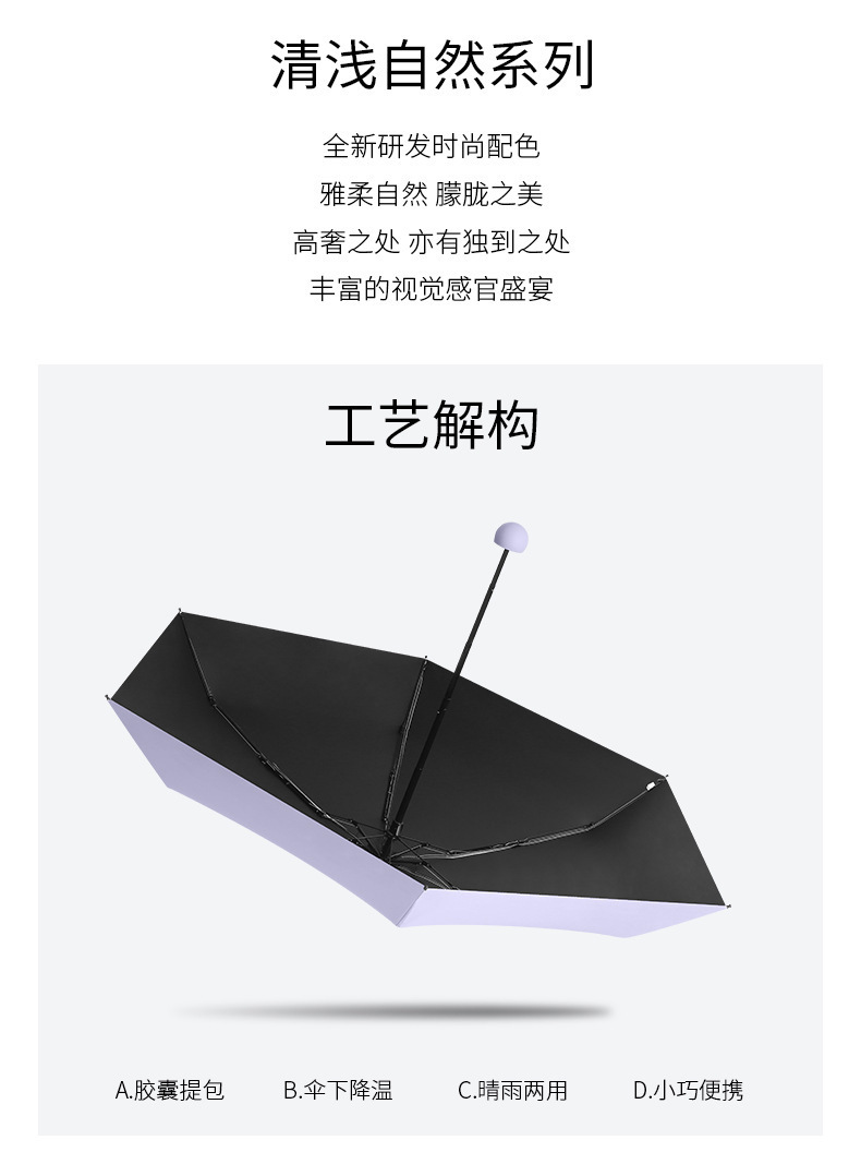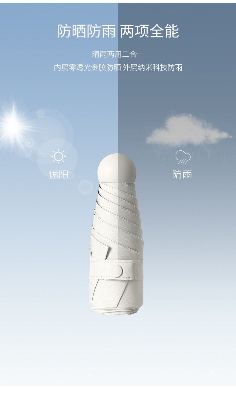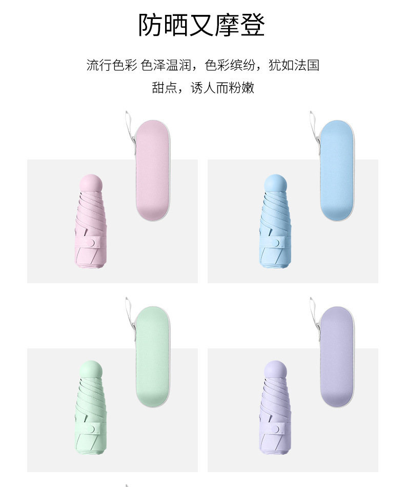 TikTok 폭발성 초경량 우산 5 배 태양 보호 자외선 보호 태양 우산 작은 캡슐 우산 써니 우산스토어 가기