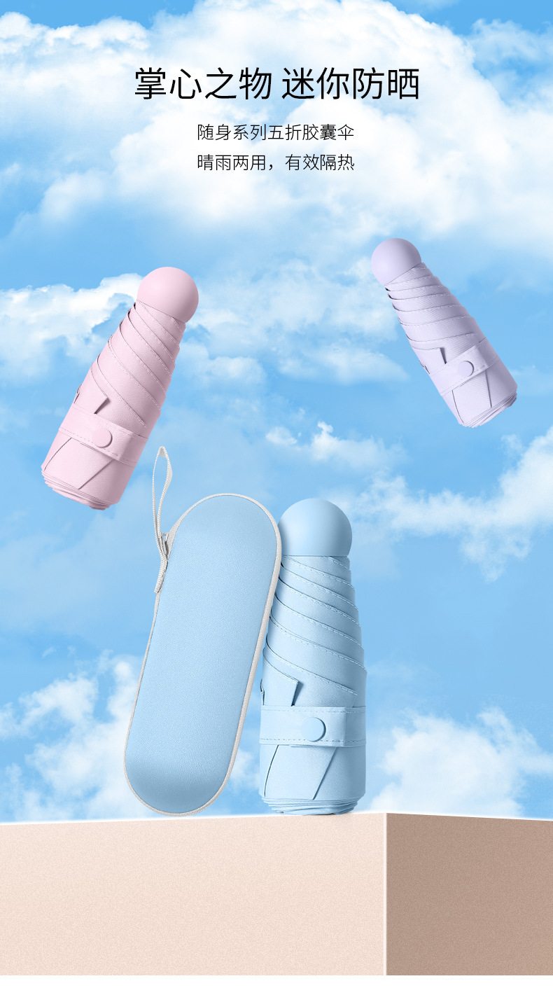 TikTok 폭발성 초경량 우산 5 배 태양 보호 자외선 보호 태양 우산 작은 캡슐 우산 써니 우산