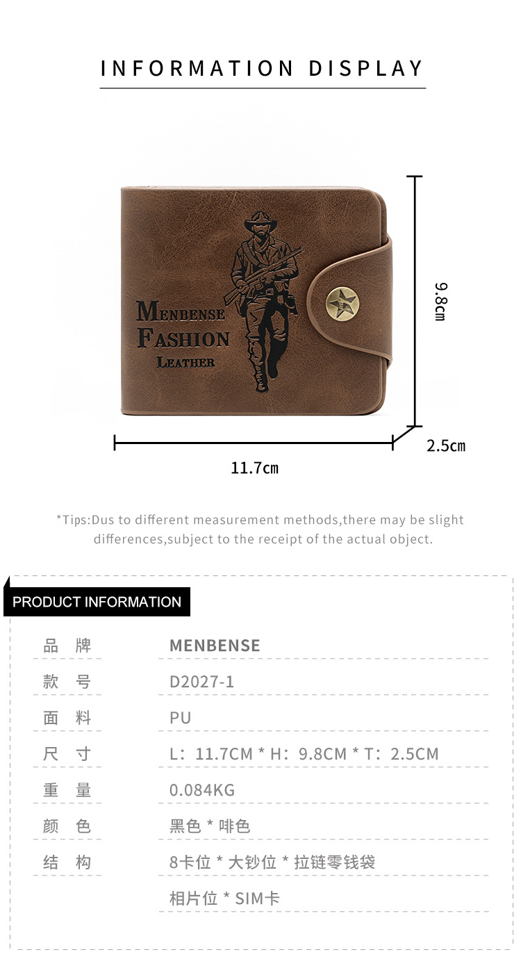 아마존 국경 핫 3 배 양각 지갑 멀티 카드 남자 지갑 짧은 지갑 버클 지갑스토어 가기