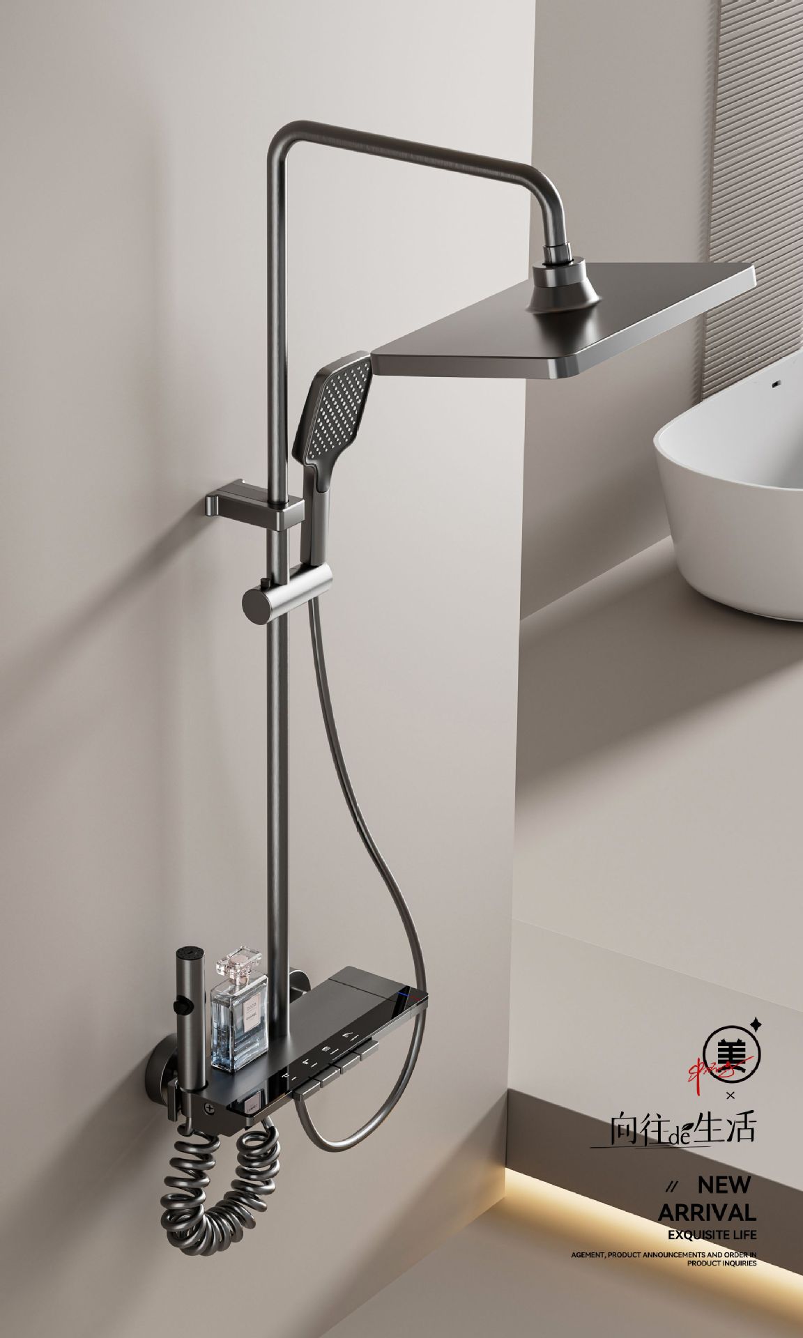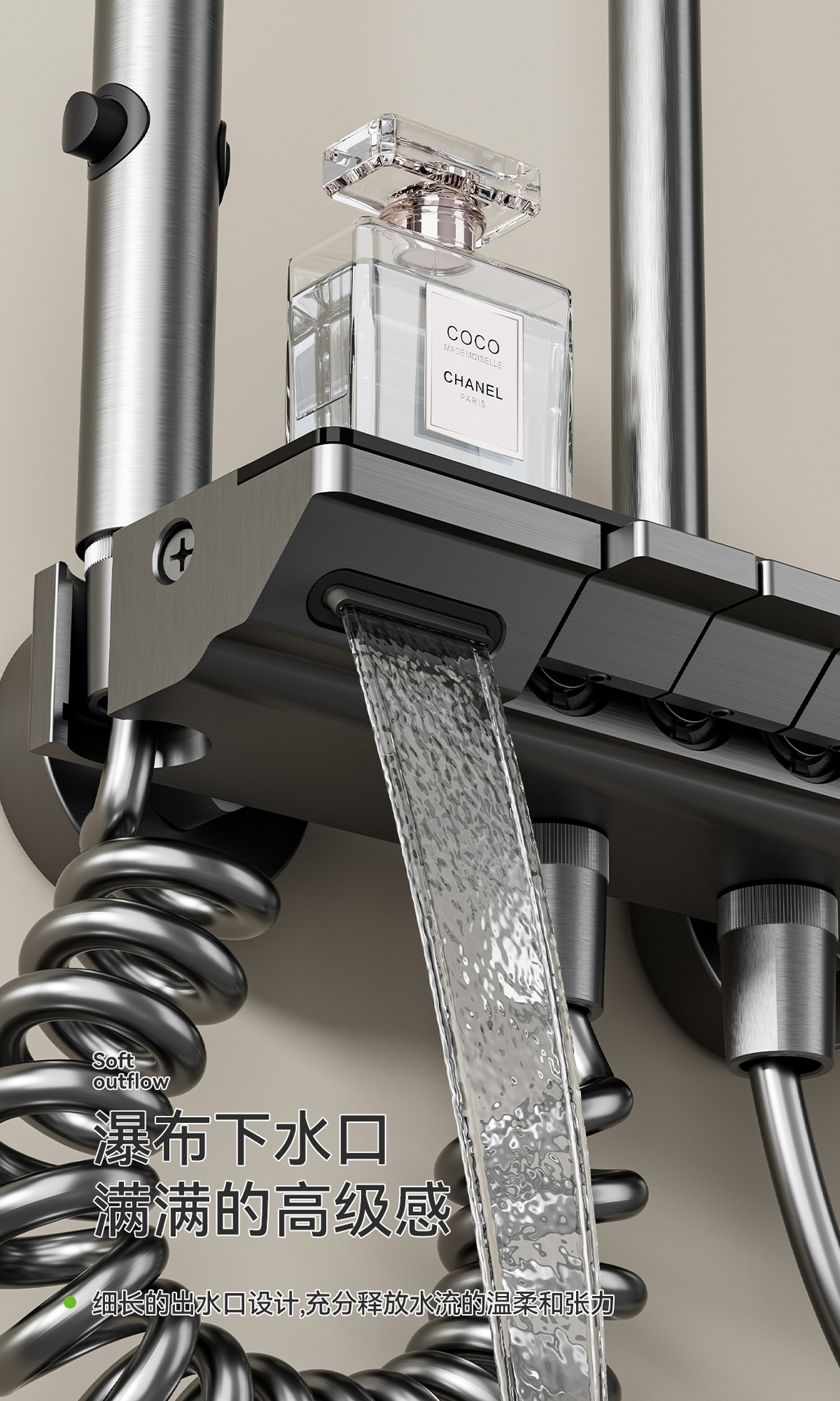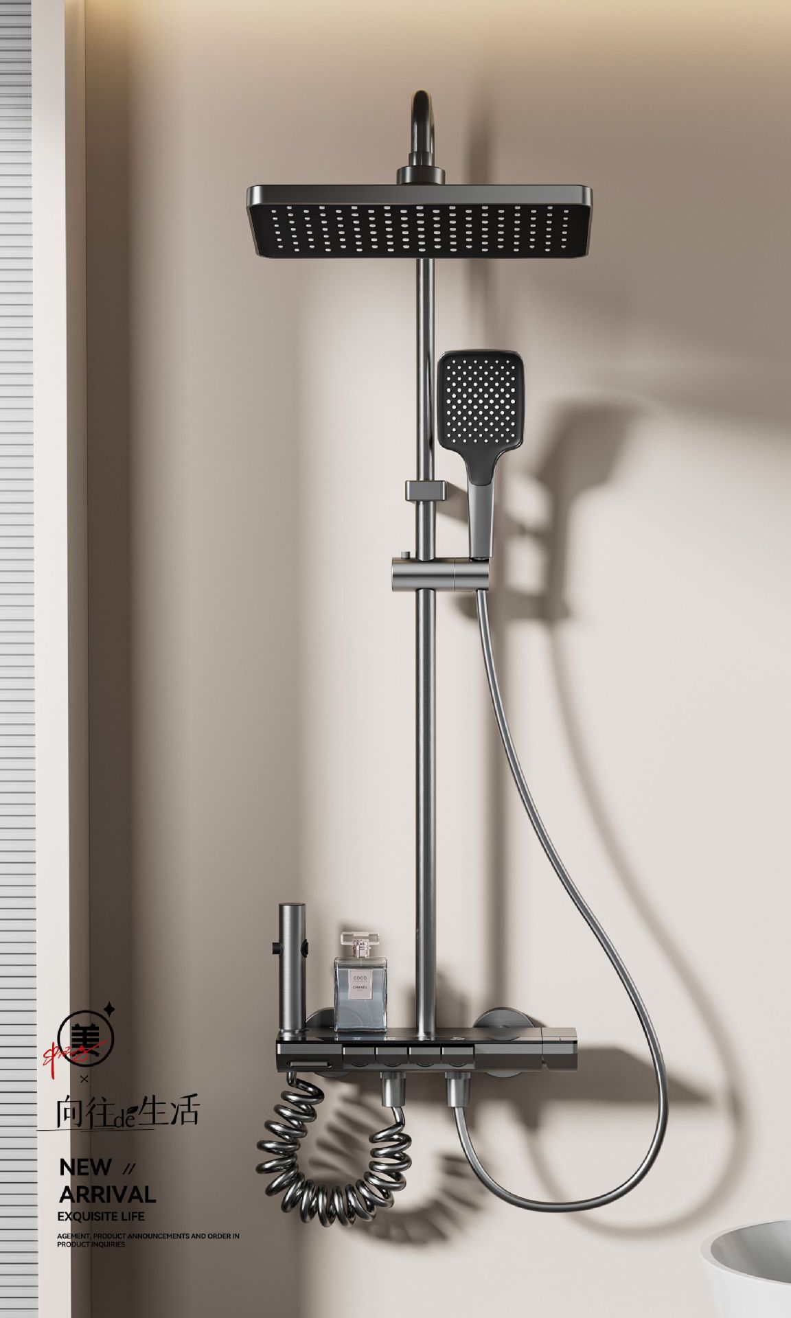 가정용 샤워기 세트 피아노 키형 호스 샤워기 세트 건메탈 색상 상부 분사 고압 샤워기 풀세트스토어 가기