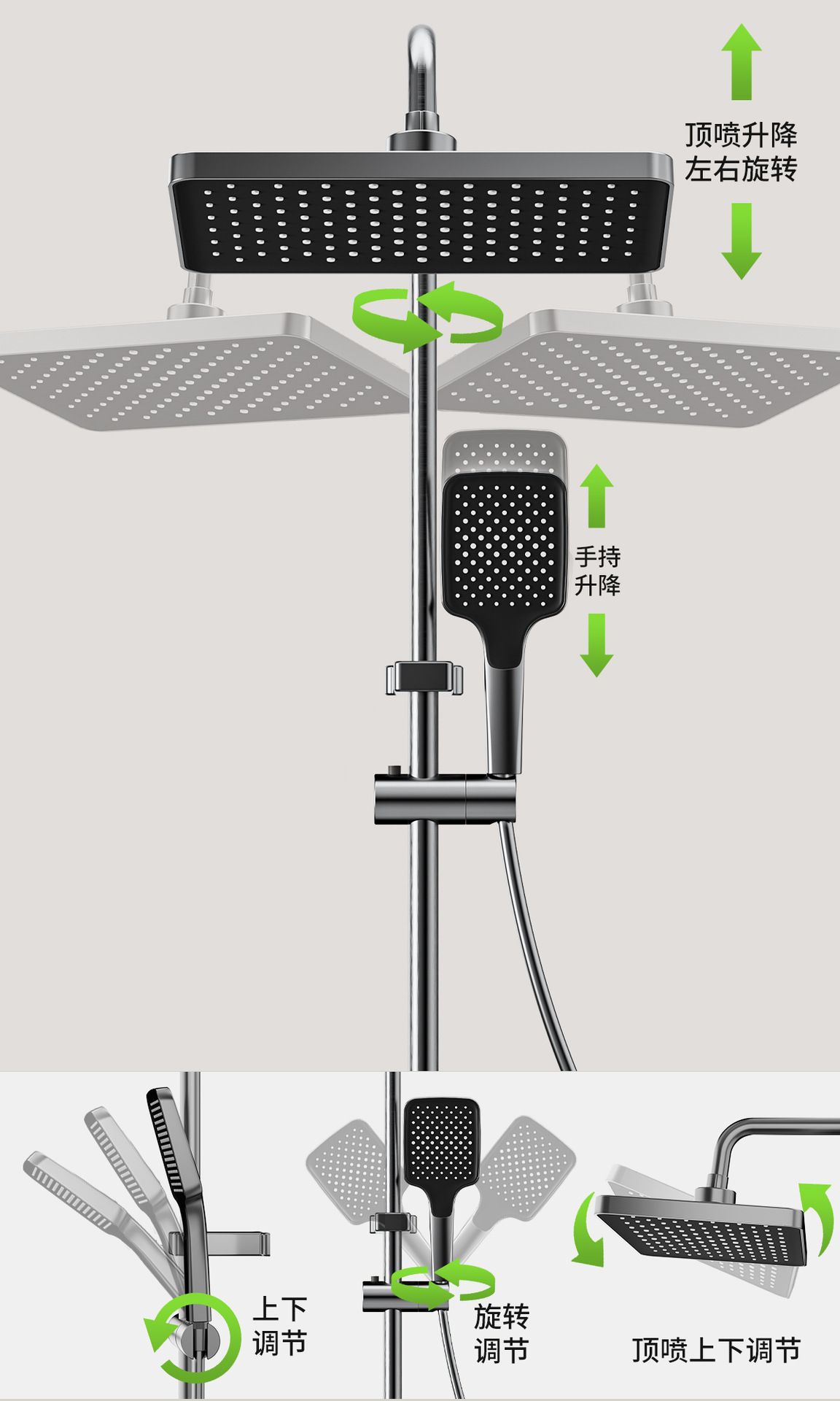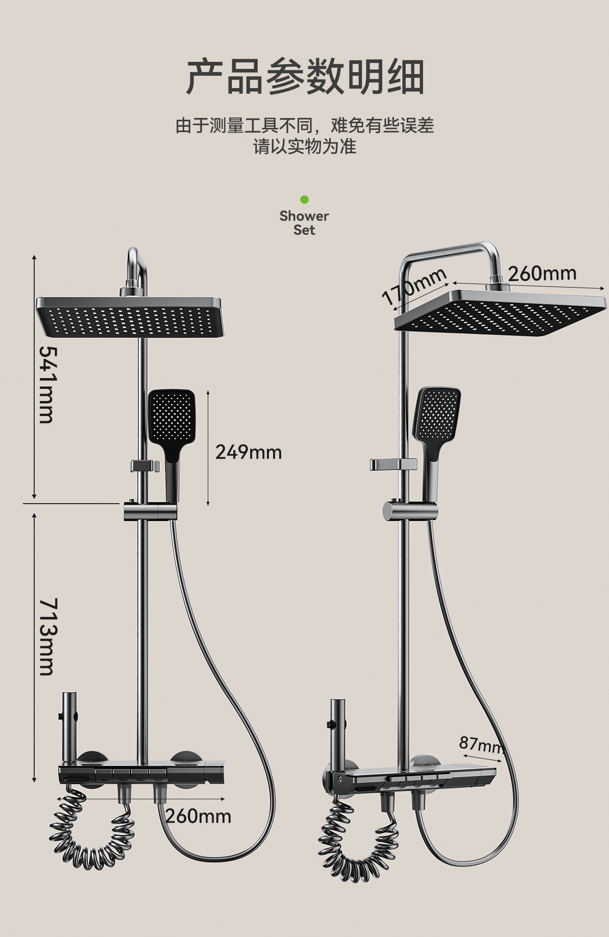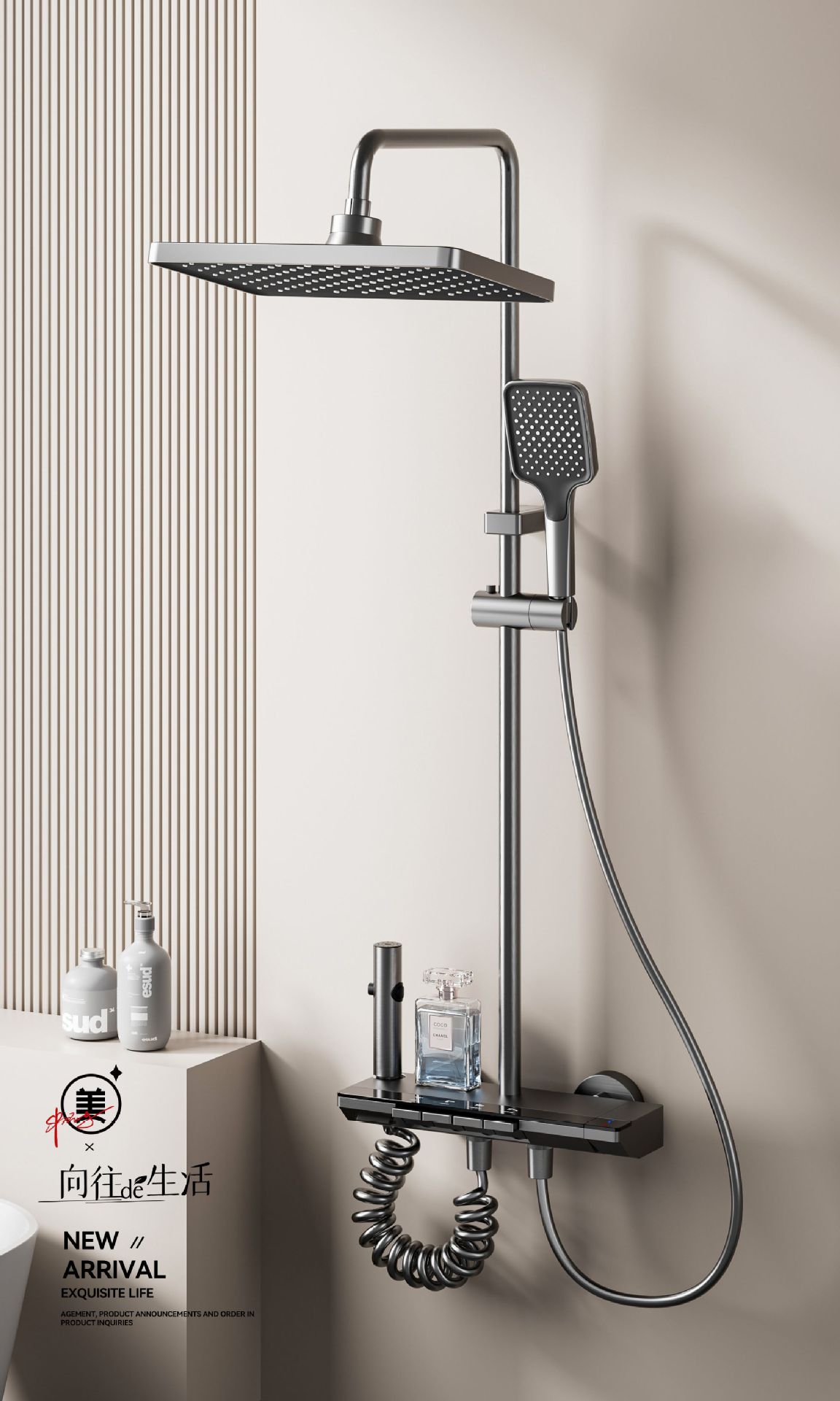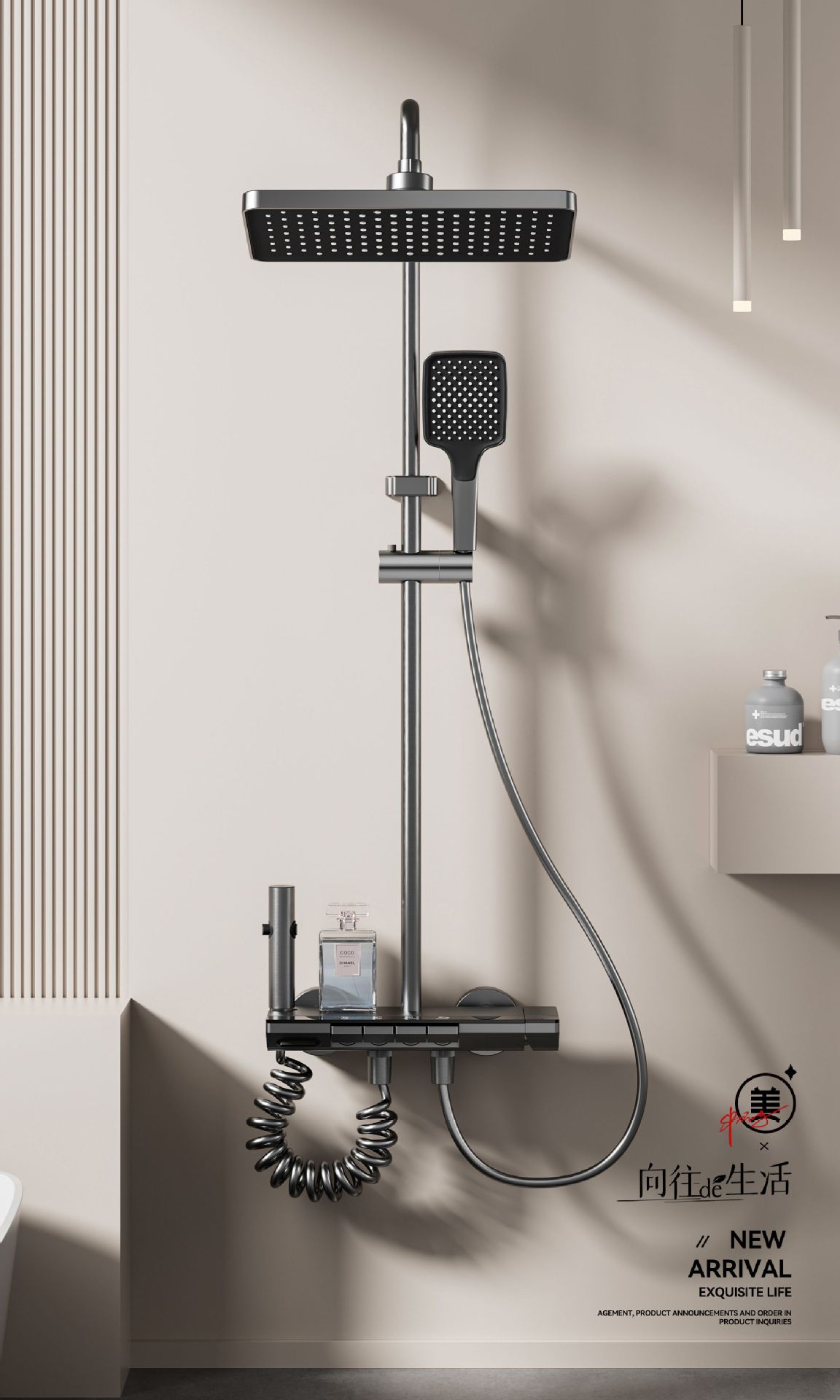 가정용 샤워기 세트 피아노 키형 호스 샤워기 세트 건메탈 색상 상부 분사 고압 샤워기 풀세트스토어 가기
