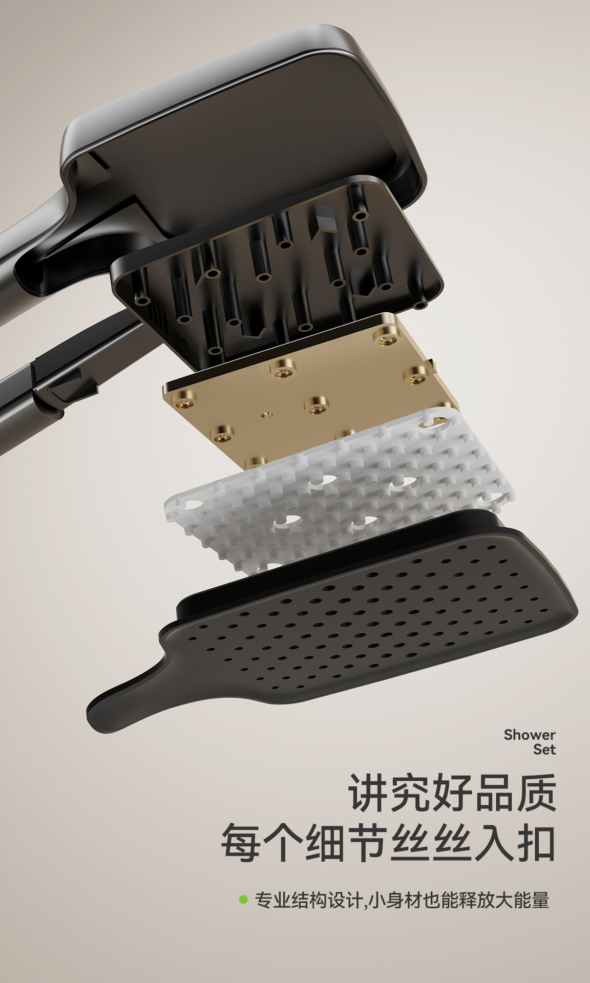 가정용 샤워기 세트 피아노 키형 호스 샤워기 세트 건메탈 색상 상부 분사 고압 샤워기 풀세트
