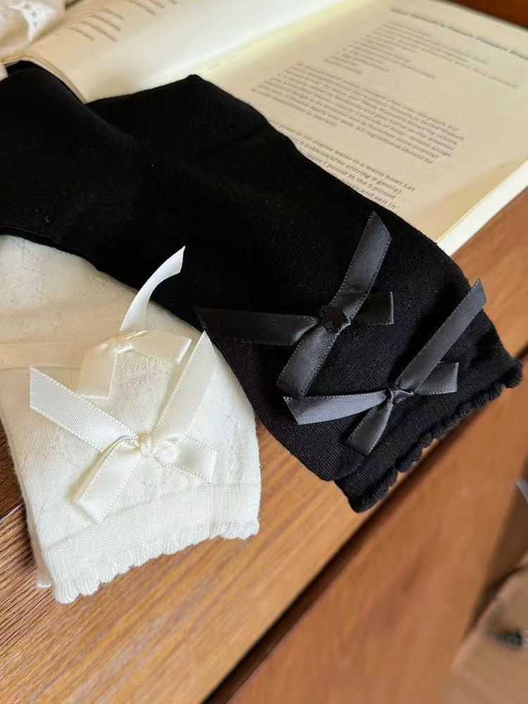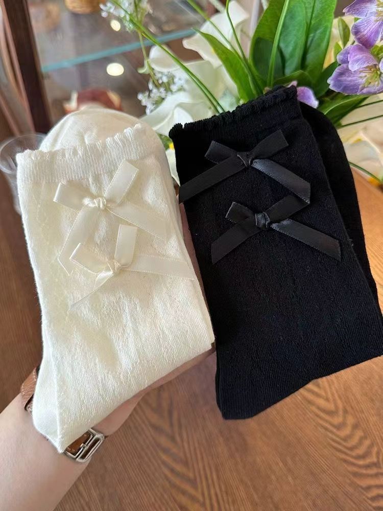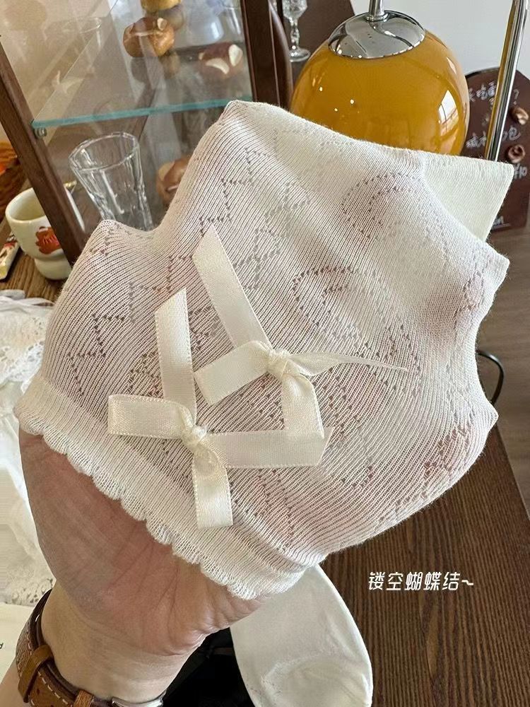 레이스 러브 봄과 여름 얇은 중간 튜브 올 매치 메쉬 보우 로리타 양말, 외부 착용 땀 흡수 양말
